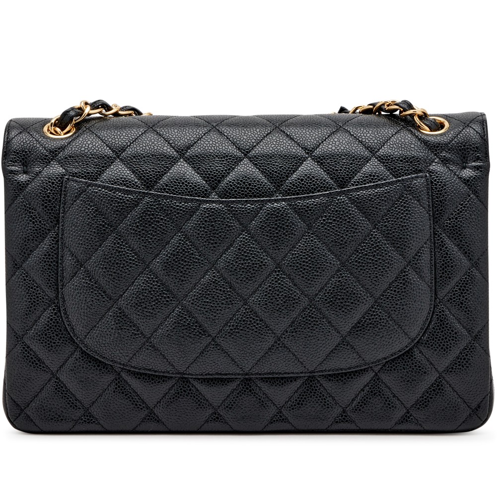 Chanel Black Quilted Caviar Jumbo Double Flap Bag Gold Hardware, 2021