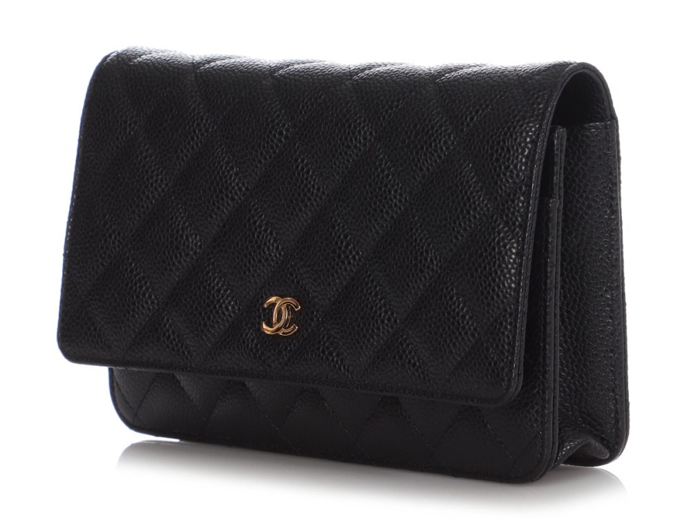 Chanel Black Quilted Caviar Wallet on Chain Gold Hardware, 2022