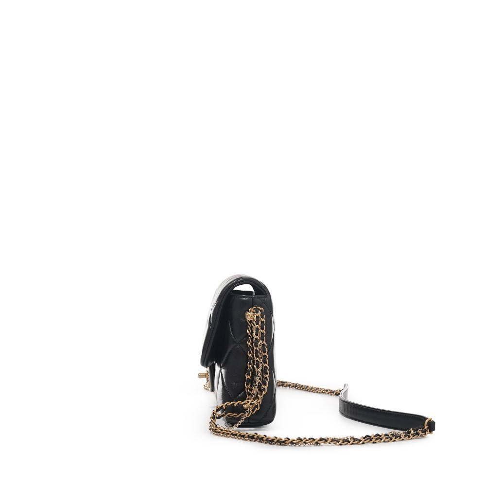 Chanel Black Quilted Lambskin and Imitation Pearl Flap Bag Gold Hardware