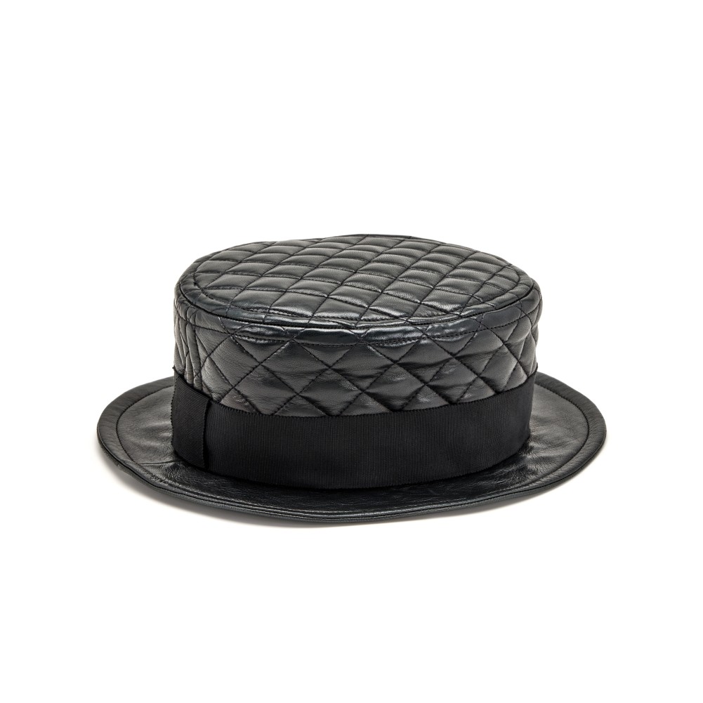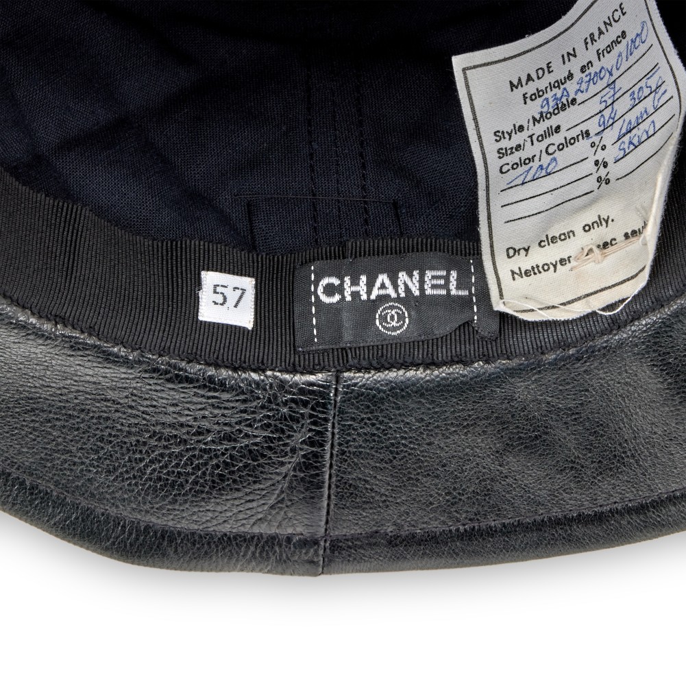 Chanel Black Quilted Lambskin Black Grosgrain Ribbon Hat Size 57, 1993