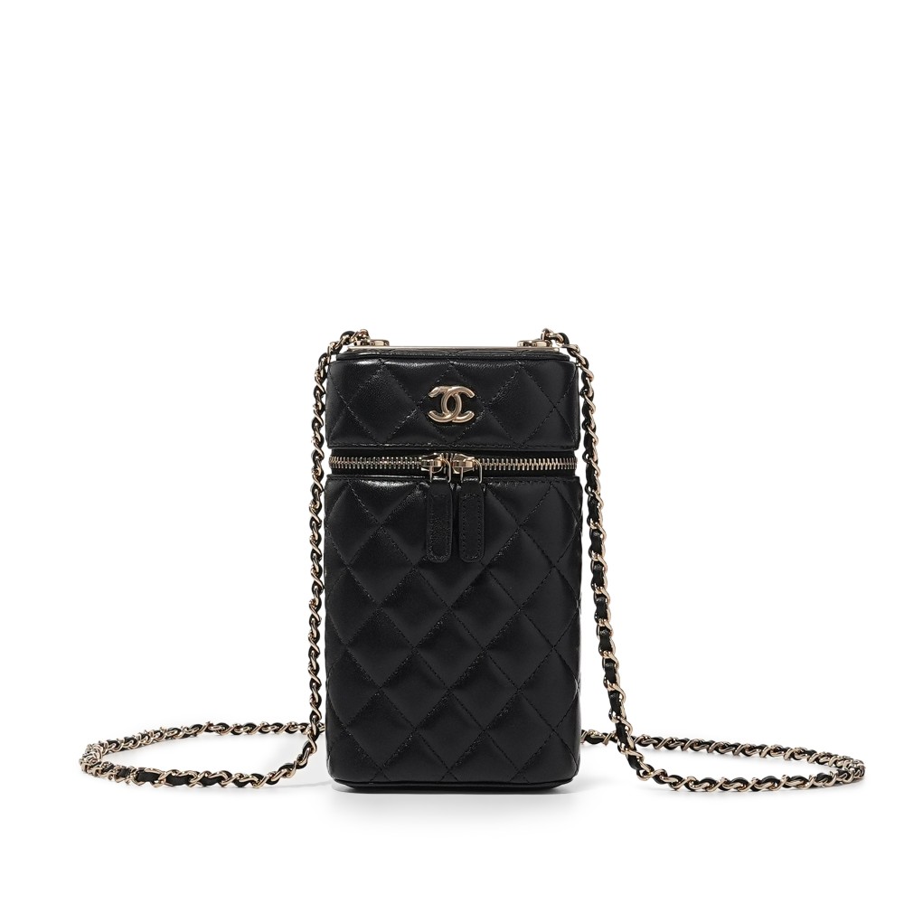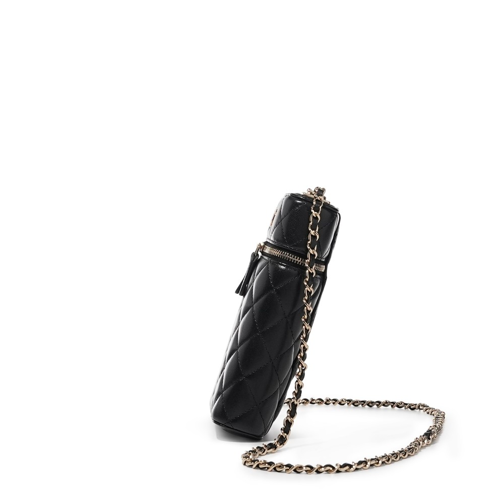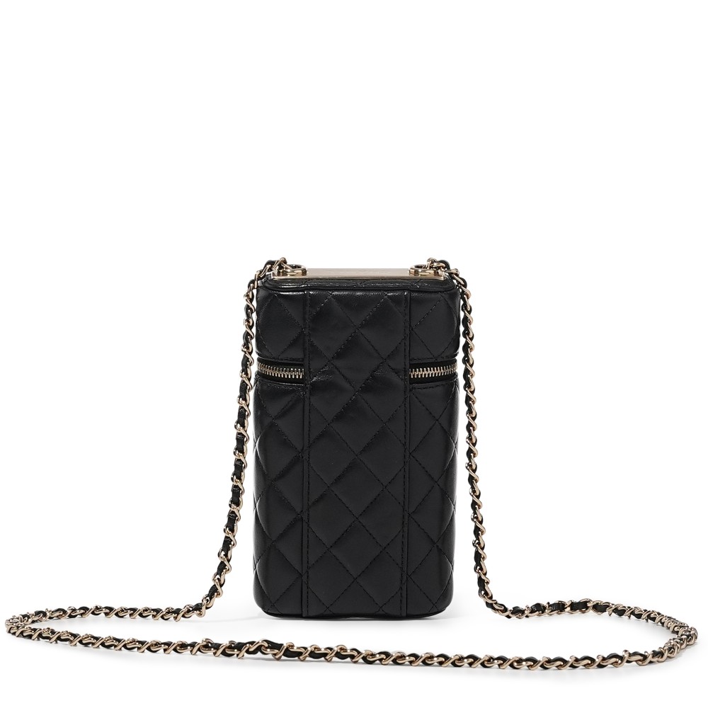 Chanel Black Quilted Lambskin CC Phone Holder Gold Hardware, 2021