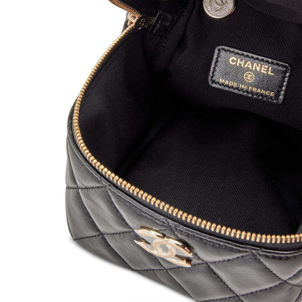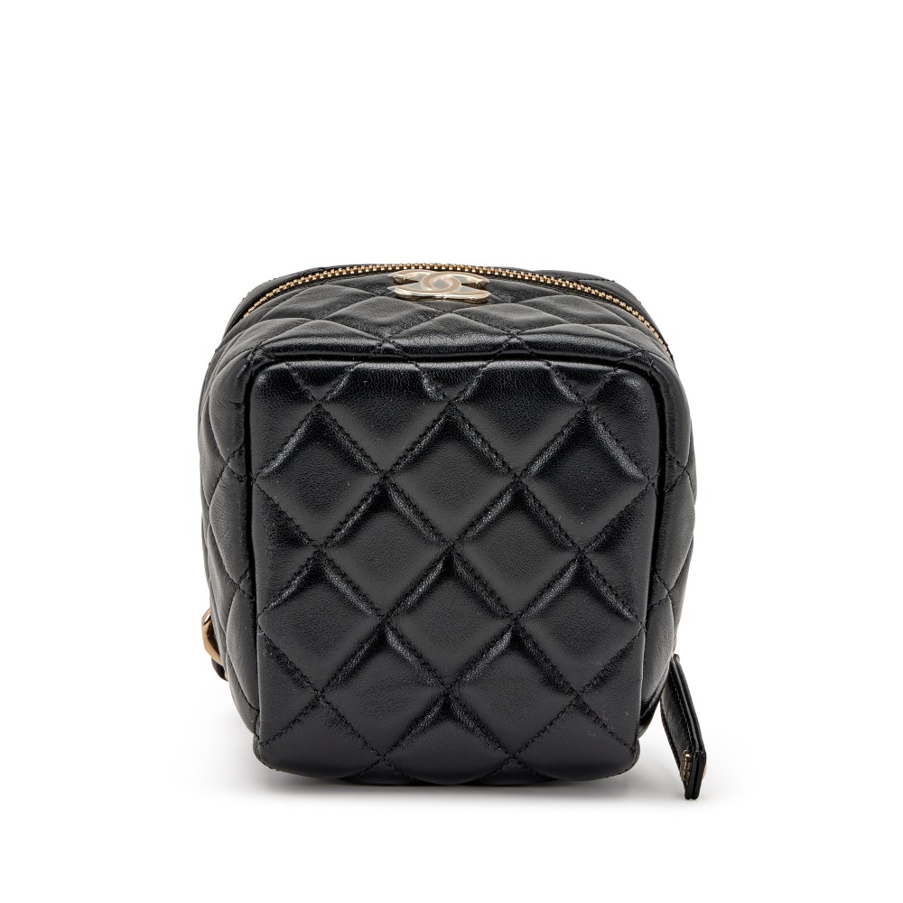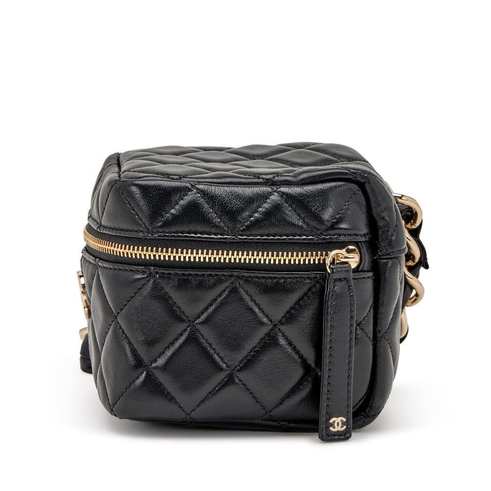 Chanel Black Quilted Lambskin Cube Vanity Clutch Gold Hardware, 2022