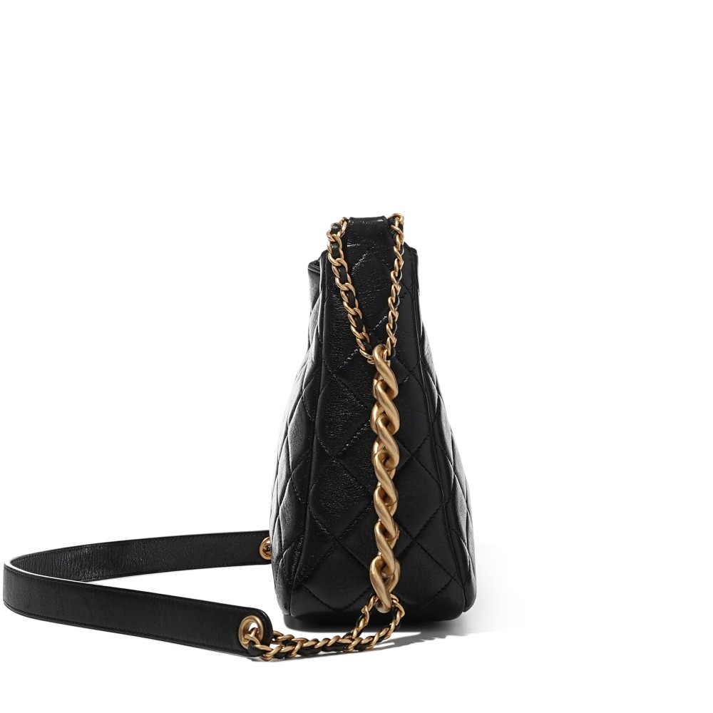 Chanel Black Quilted Lambskin Hobo Bag Aged Gold Hardware, 2022t
