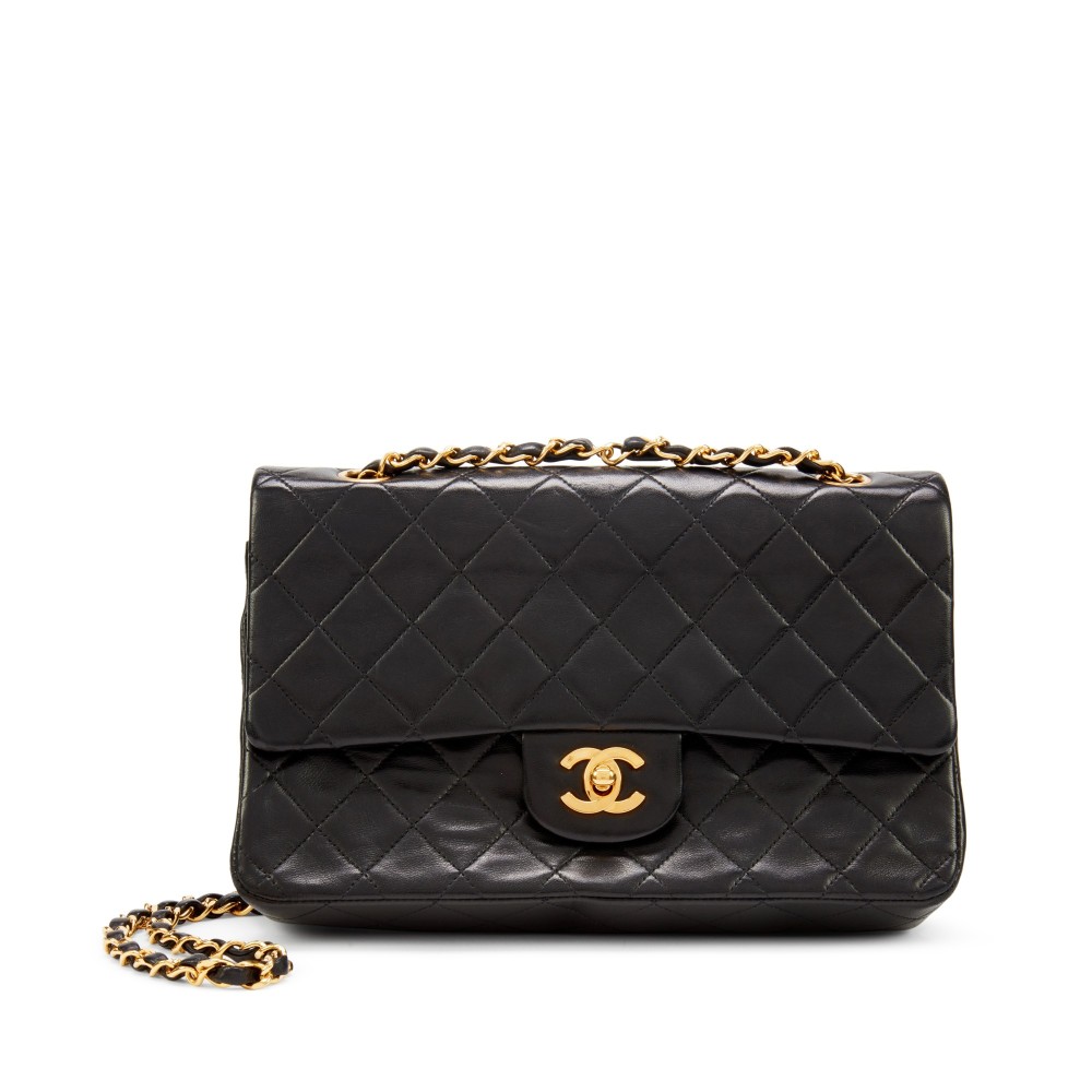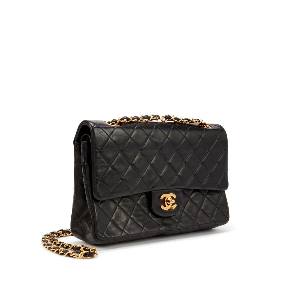 Chanel Black Quilted Lambskin Leather Medium Classic Double Flap Bag Gold Hardware, 1991-1994