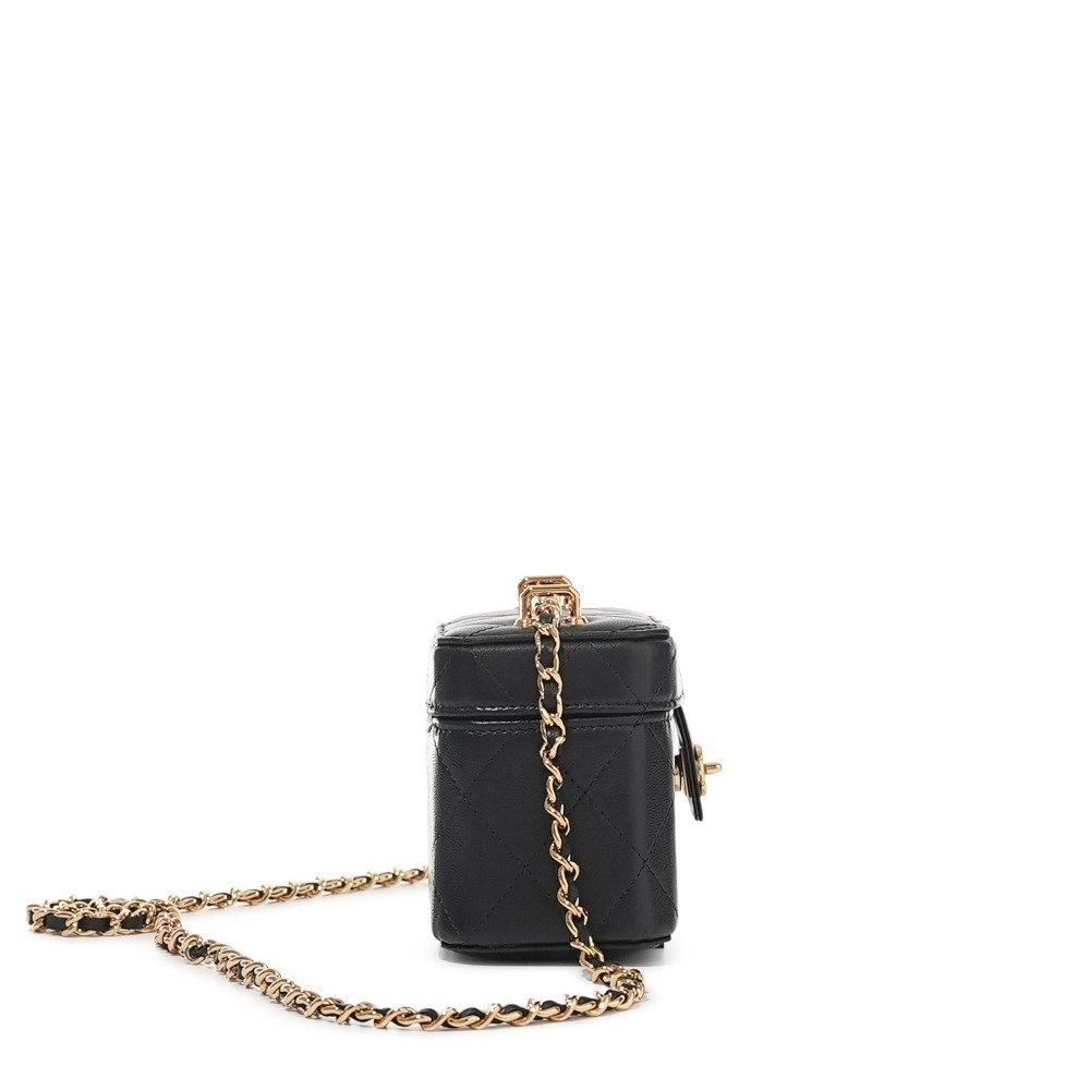 Chanel Black Quilted Lambskin Micro Vanity Case Gold Hardware, 2023