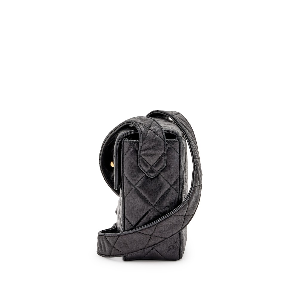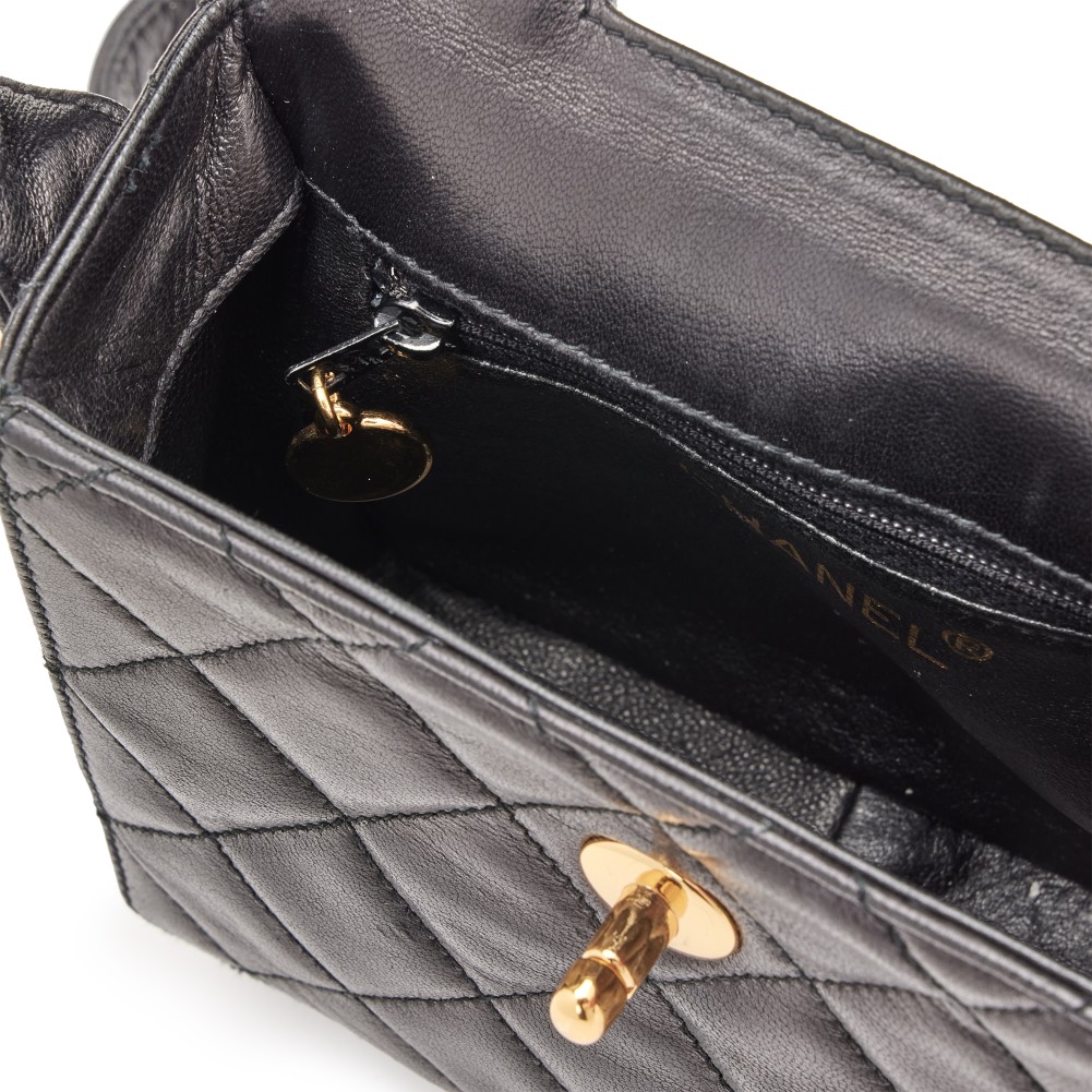 Chanel Black Quilted Lambskin Mini Vanity Mirror Train Case Box Flap Gold Hardware, 1996-1997