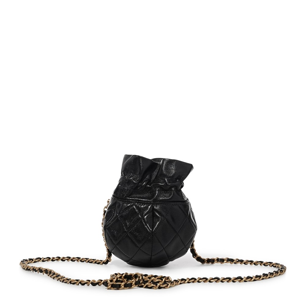 Chanel Black Quilted Lambskin Round Drawstring Bag Gold Hardware