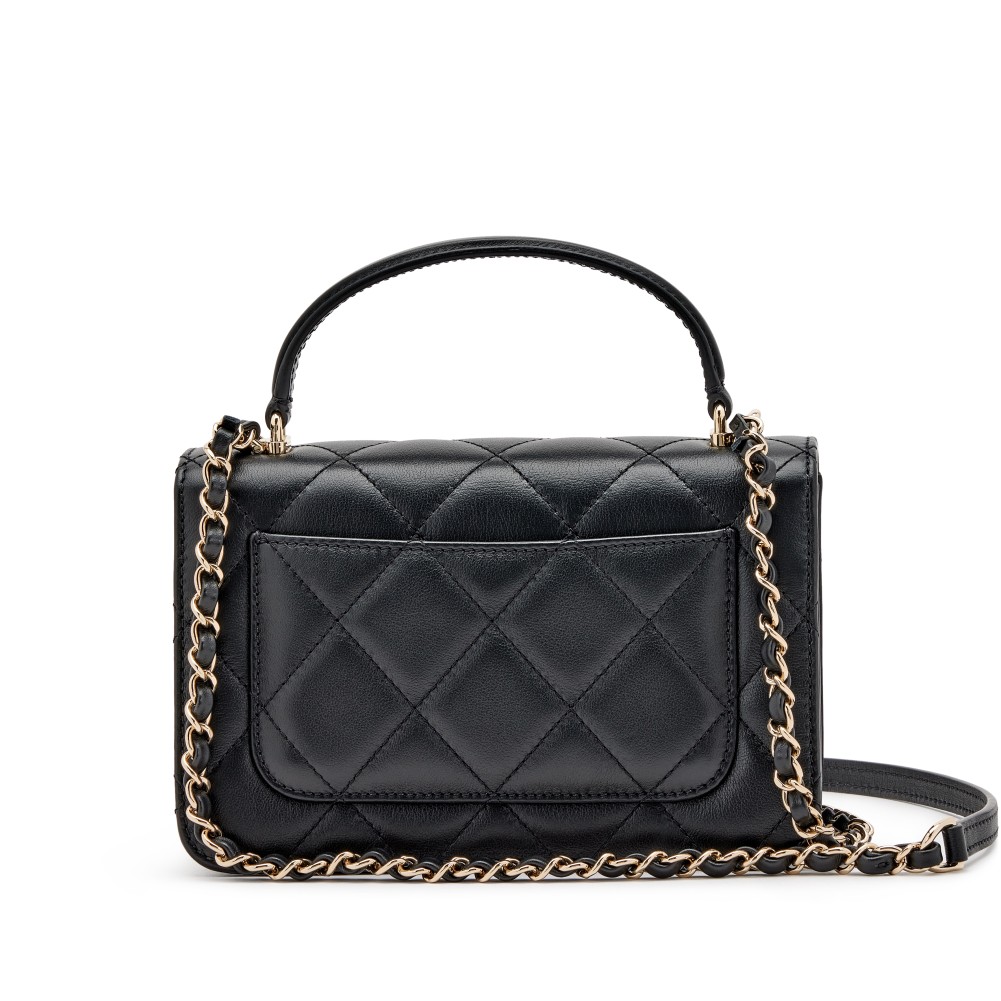 Chanel Black Quilted Lambskin Small Top Handle Flap Pale Gold Hardware, 2021