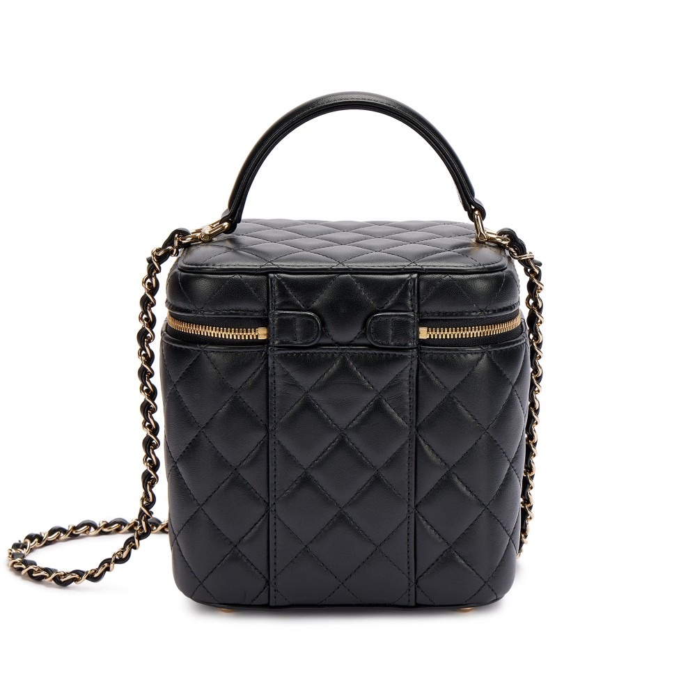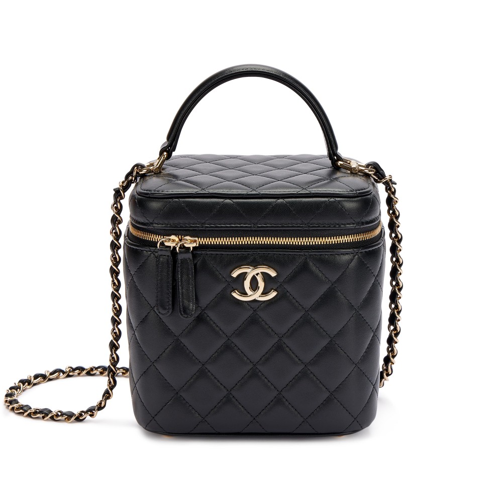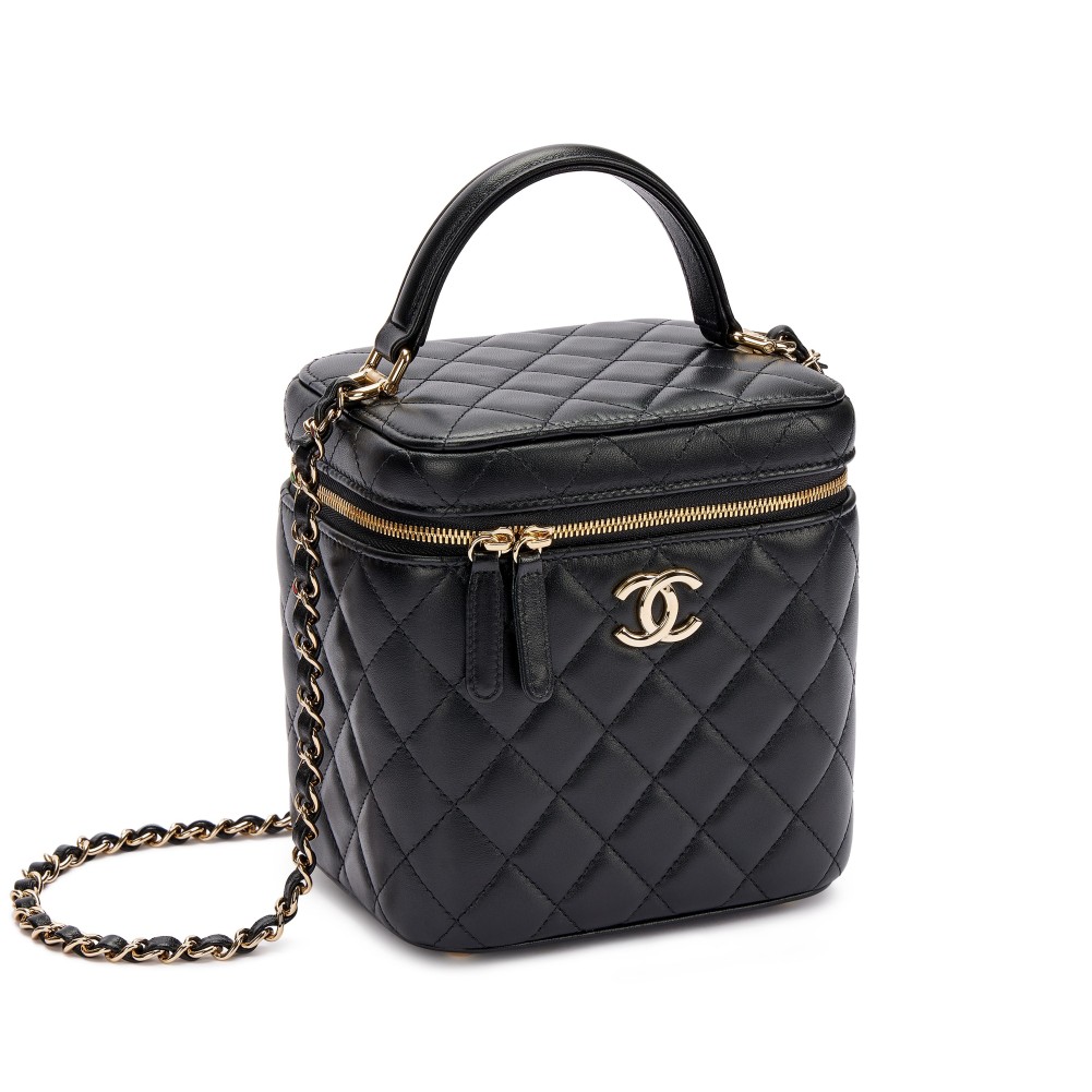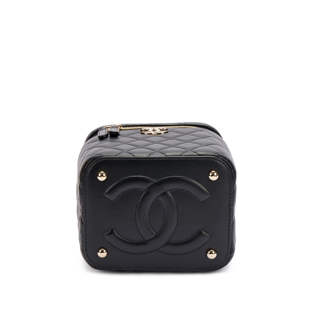 Chanel Black Quilted Lambskin Top Handle Vanity Pale Gold Hardware