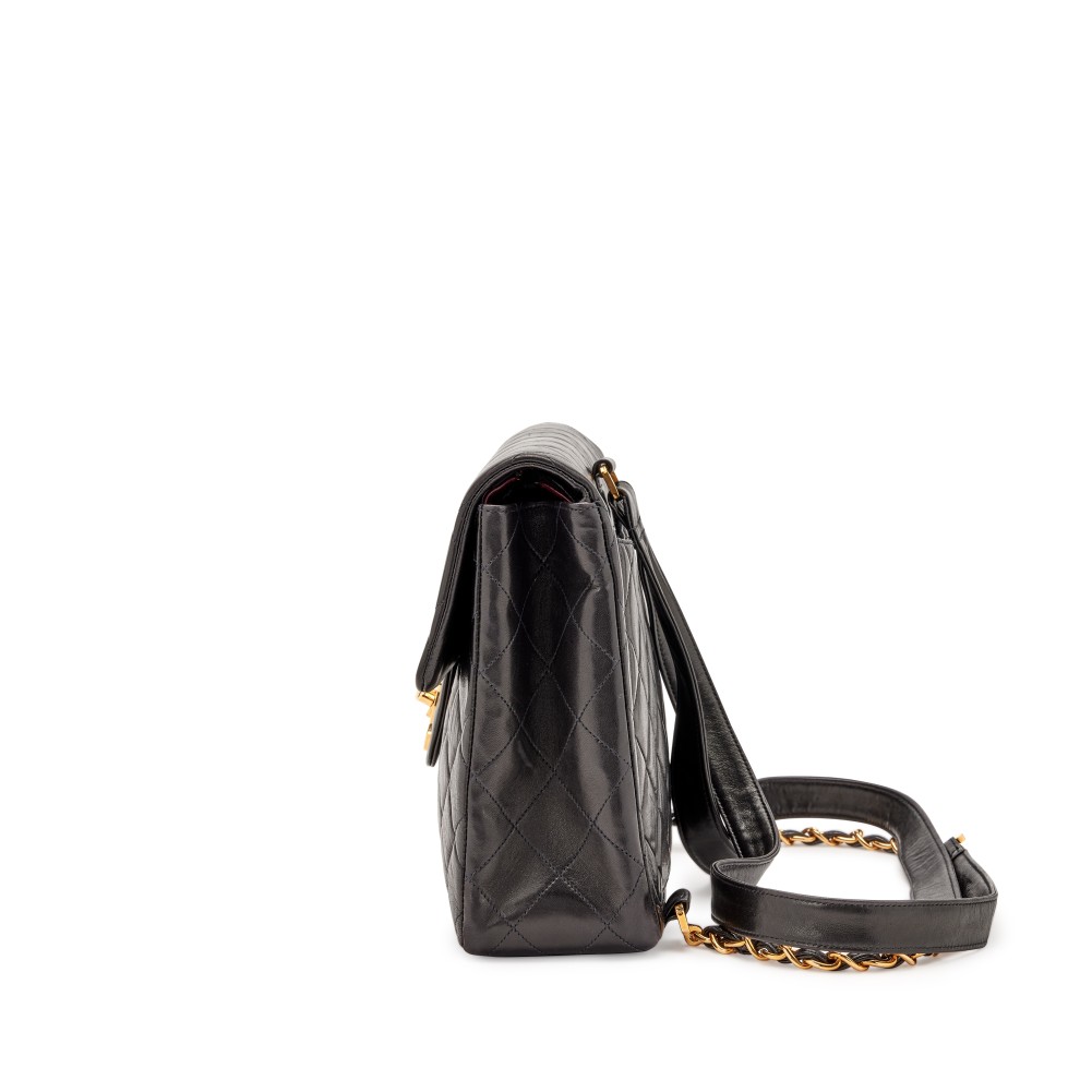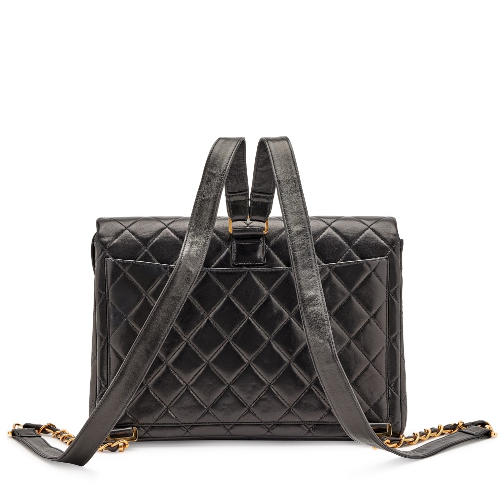 Black Quilted Lambskin XL CC Jumbo Flap Backpack Gold Hardware, 1994-1996