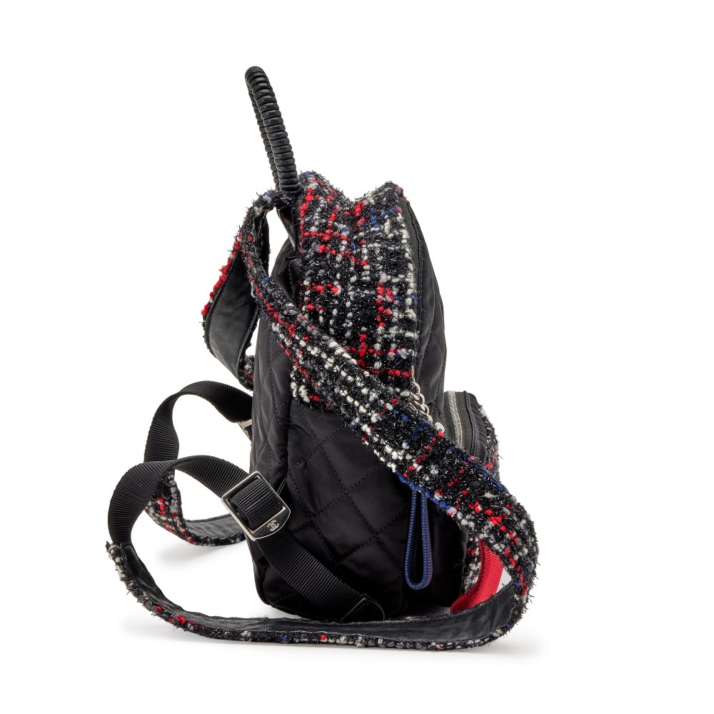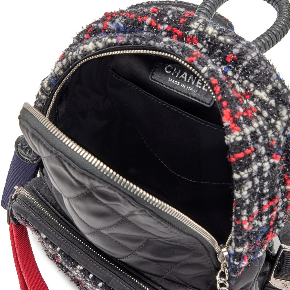 Chanel Black Quilted Nylon and Tweed Astronaut Essentials Small Backpack Silver Hardware, 2017-2018