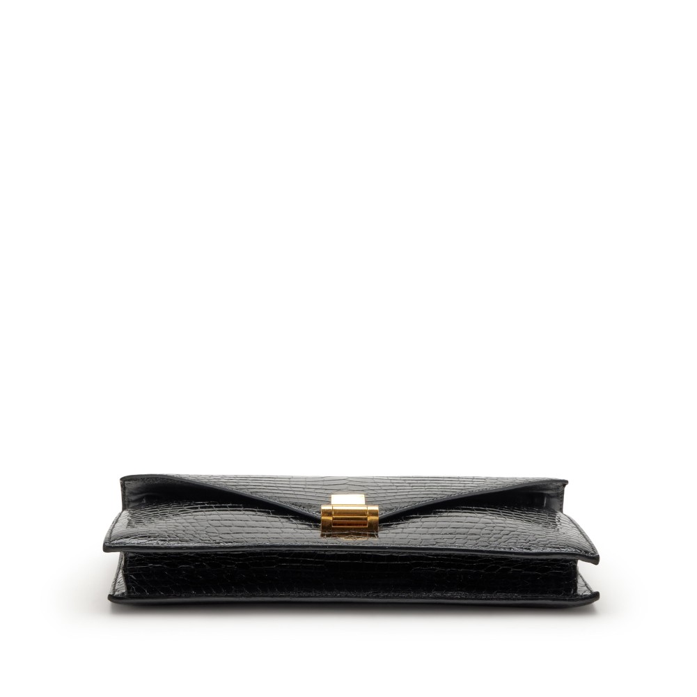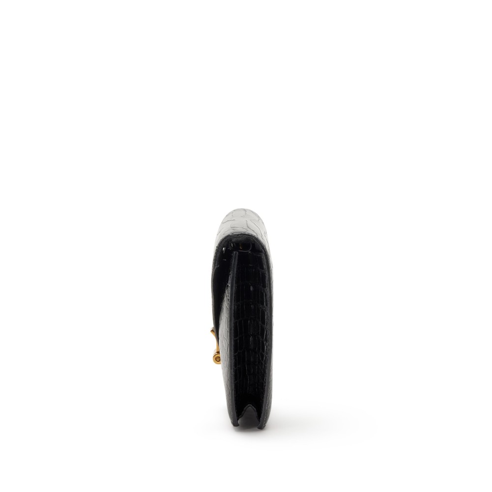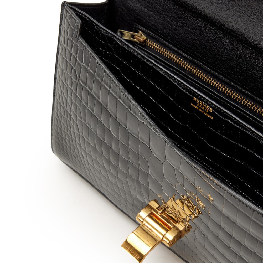 Herm?s Black Shiny Crocodile Sac Cendrillon Flap Gold Hardware, 1975