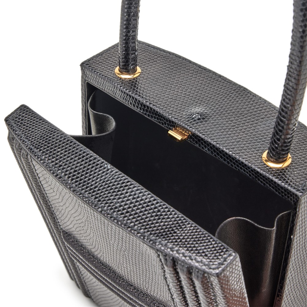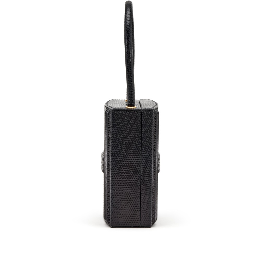 Herm?s Black Shiny Niloticus Lizard Cadena Bag Gold Hardware, 1990s
