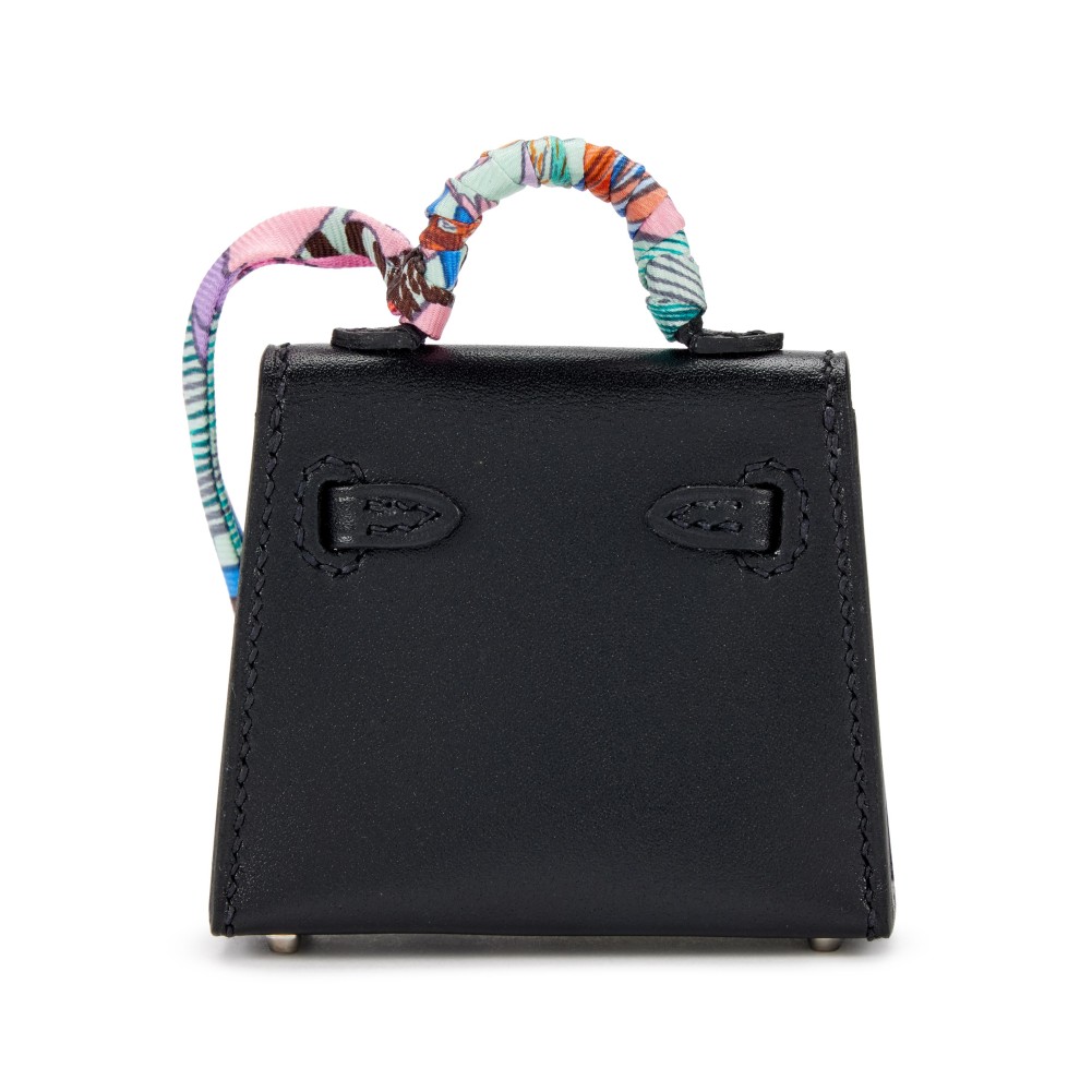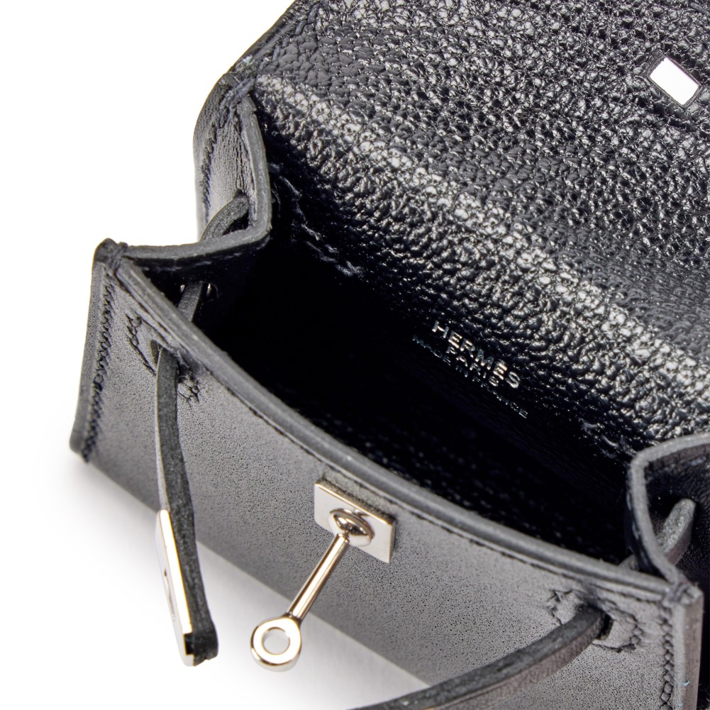 Herm?s Black Tadelakt Micro Mini Twilly Kelly Bag Charm Palladium Hardware, 2021