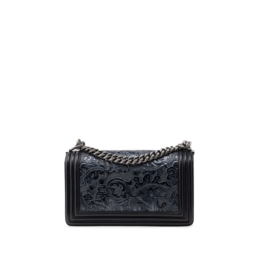 Chanel Black Tooled Leather Paris-Dallas Medium Boy Bag Silver Hardware, 2014