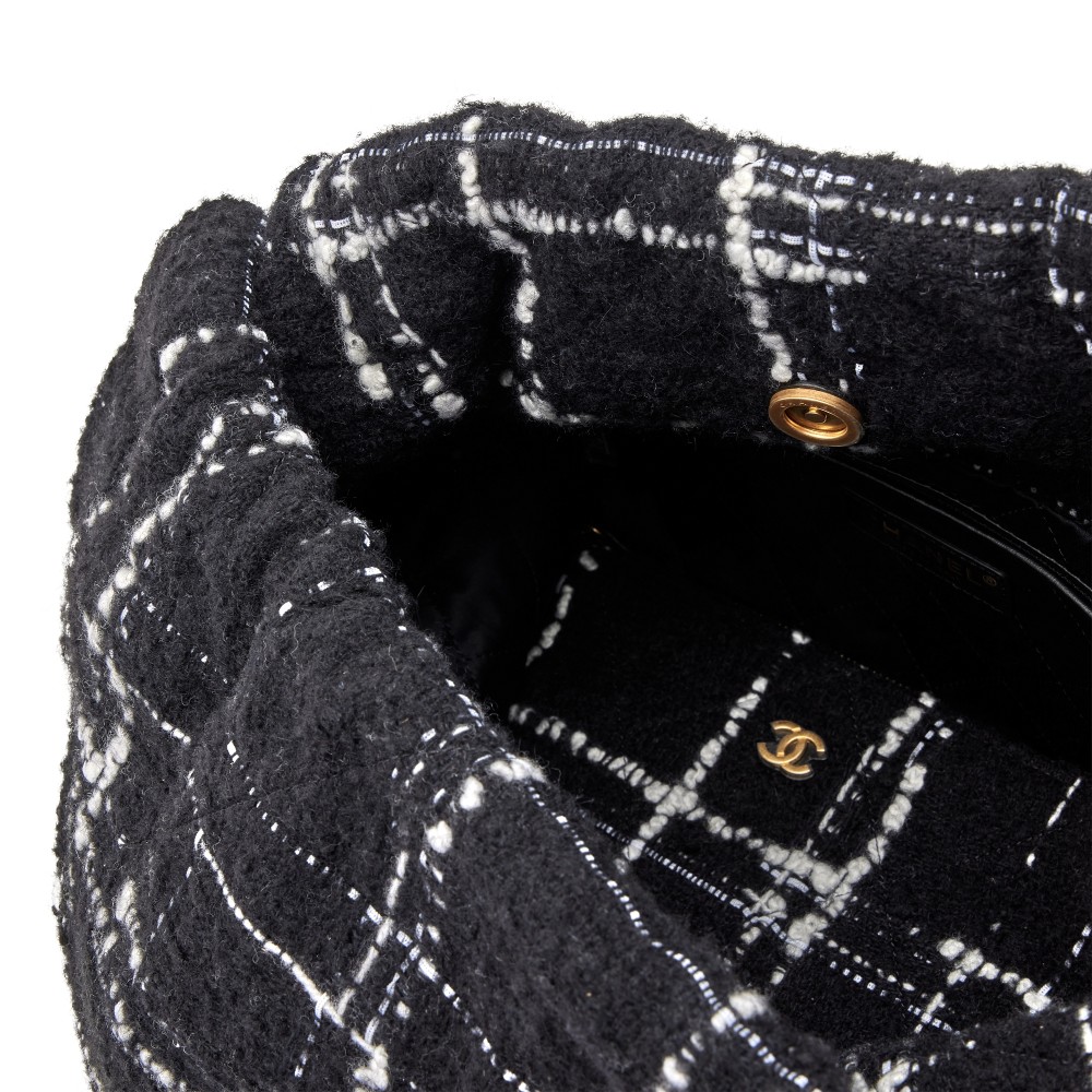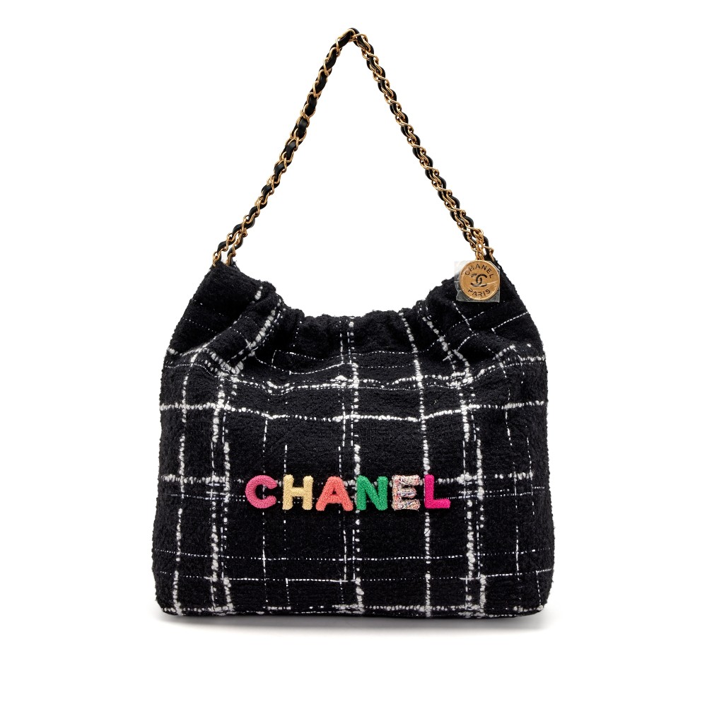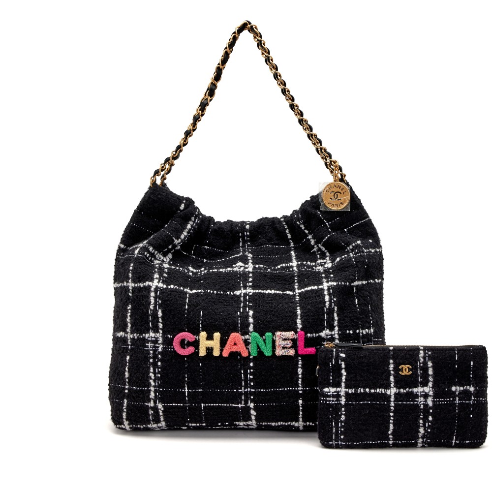 Chanel Black, White, and Rainbow Tweed 22 Tote Aged Gold Hardware
