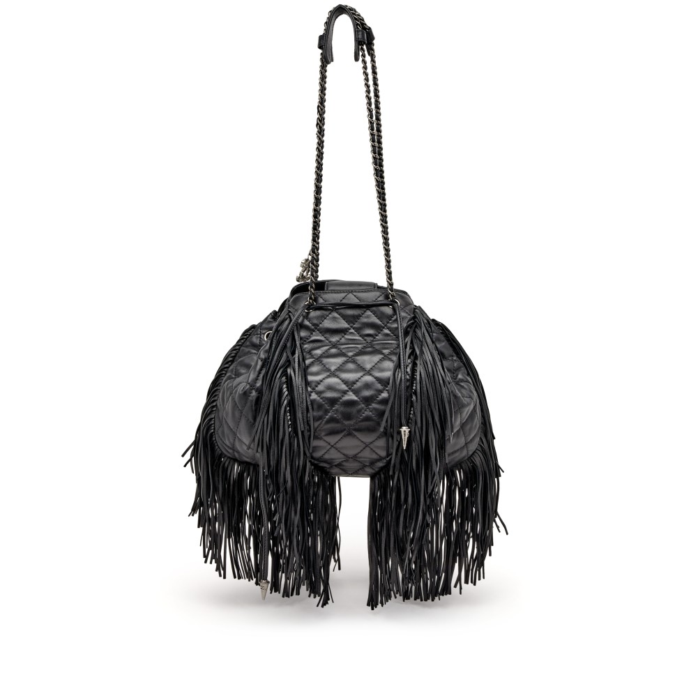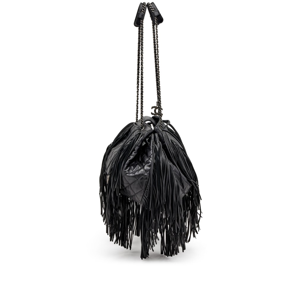 Chanel Black Woven Western Baluchon Fringe Bag Ruthenium Hardware, 2014