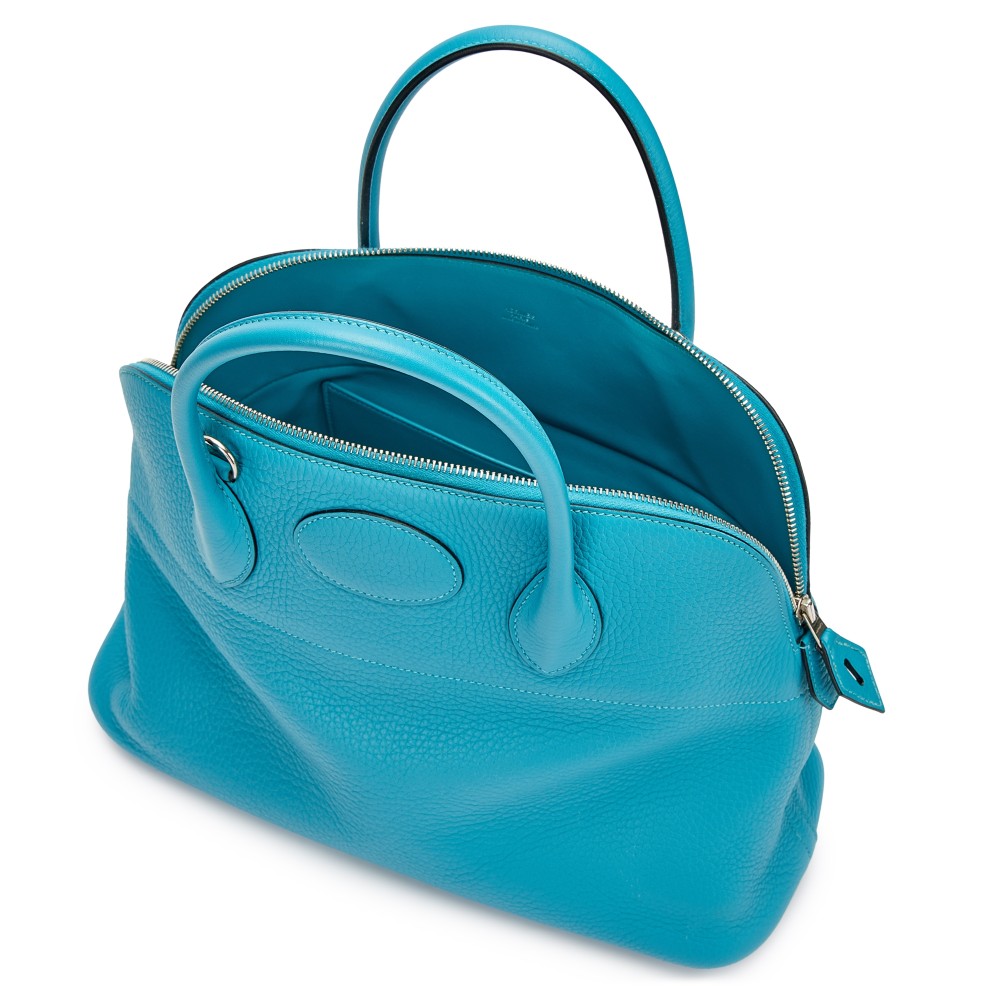 Herm?s Bleu Aztec Clemence Bolide 35 Palladium Hardware, 2014
