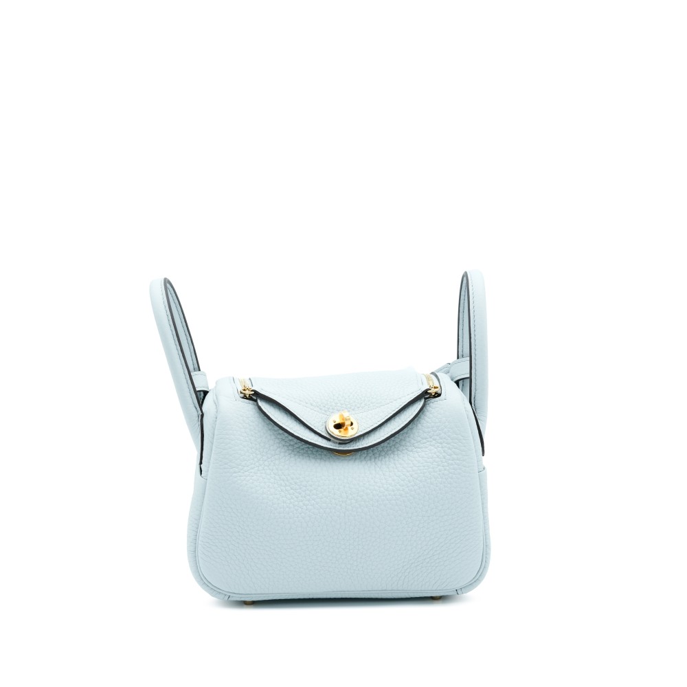 Herm?s Bleu Pale Clemence Mini Lindy 20 Gold Hardware, 2023t
