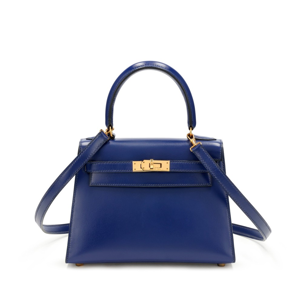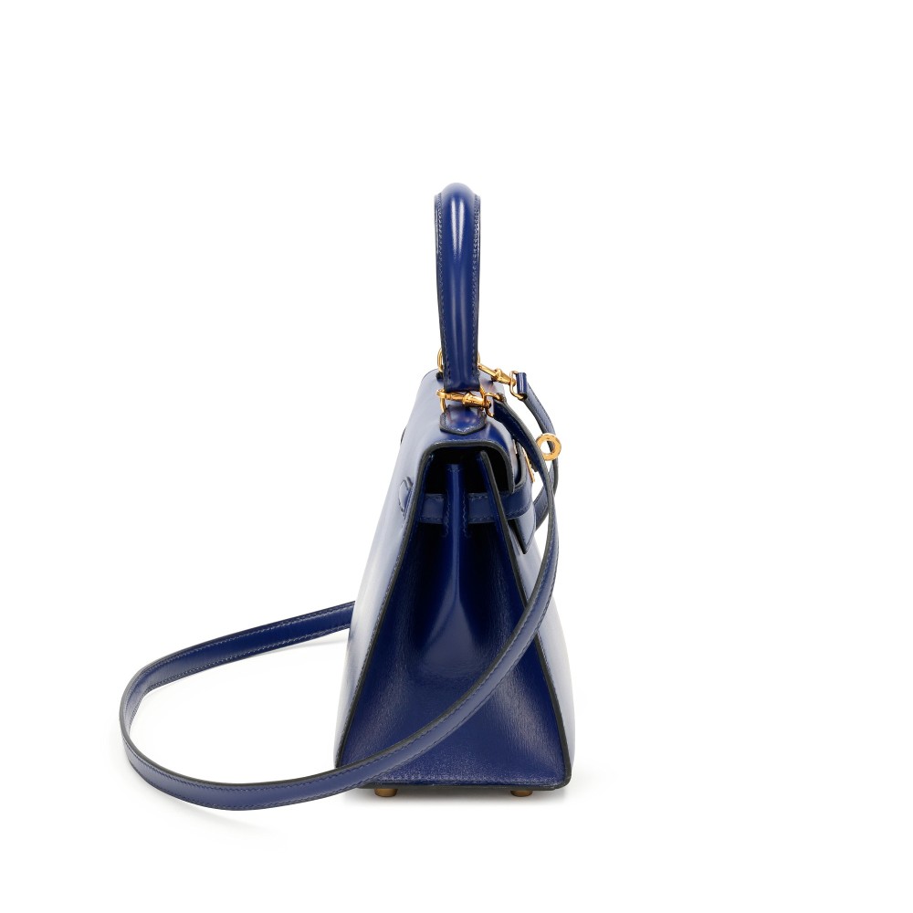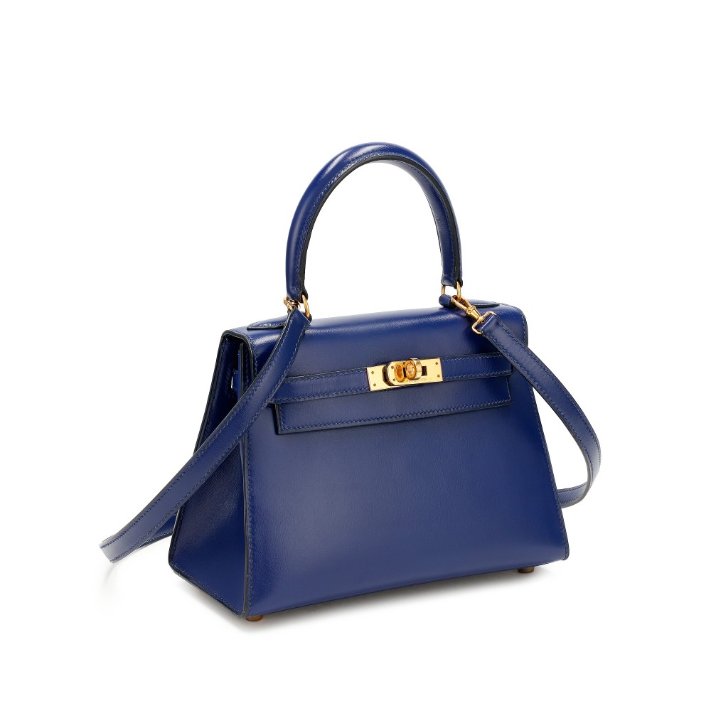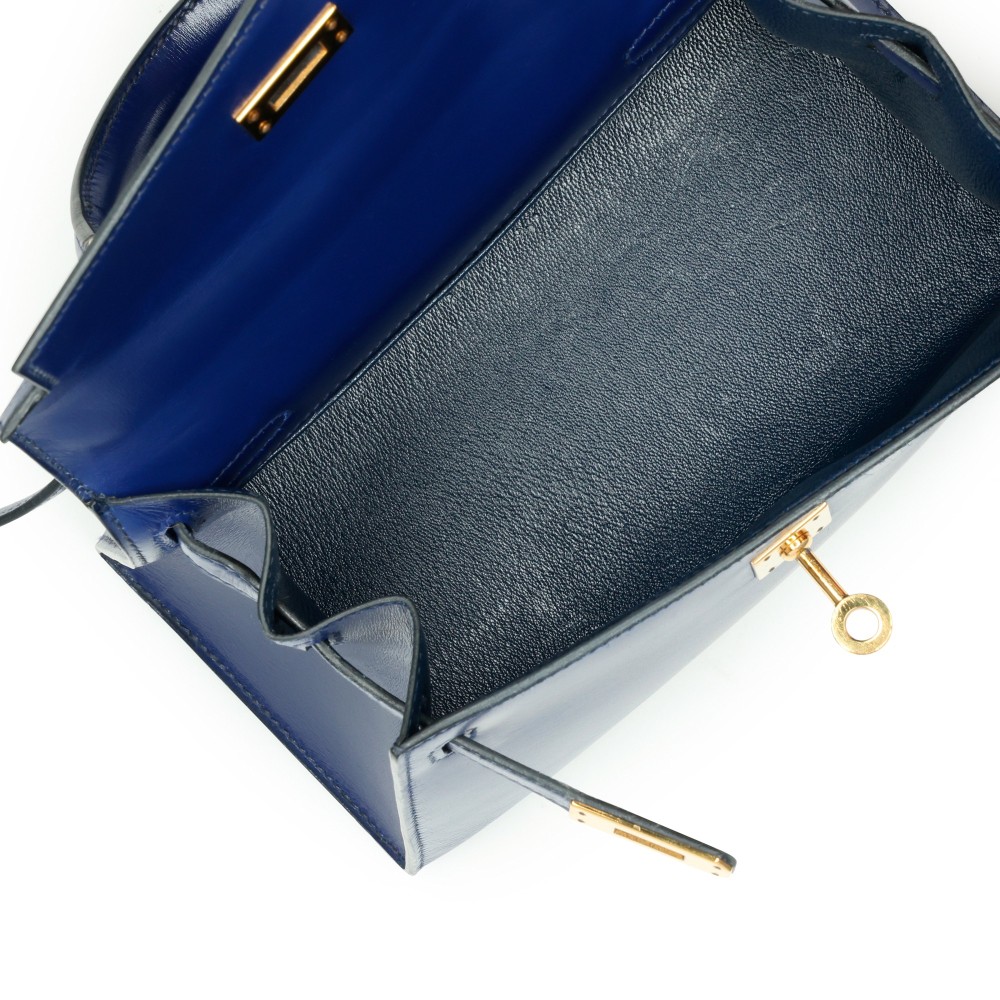 Herm?s Bleu Sapphire Box Calf Mini Sellier Kelly 20 Gold Hardware, 1991