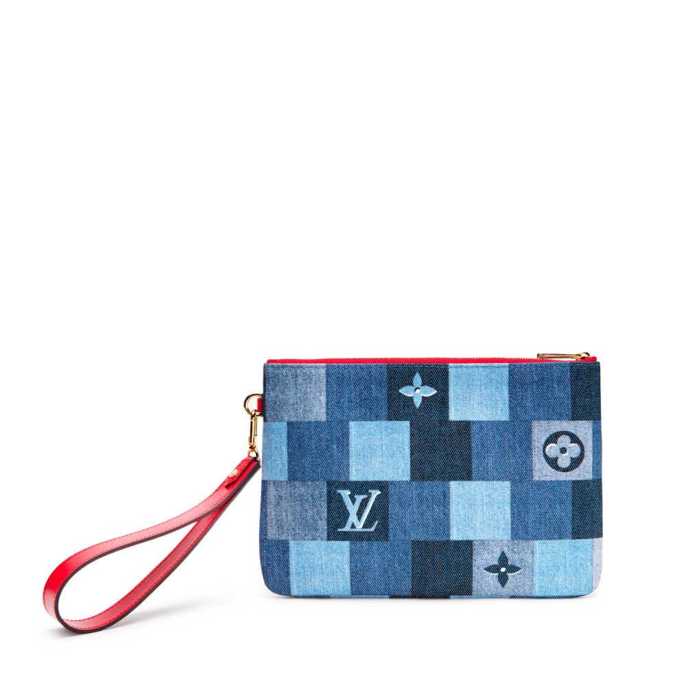 Louis Vuitton Blue and Red Damier Monogram Denim City Pouch Gold Hardware, 2019