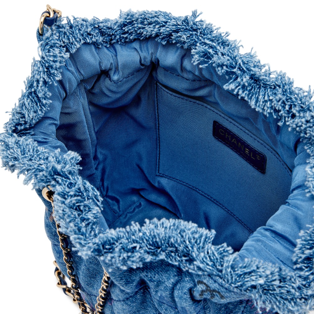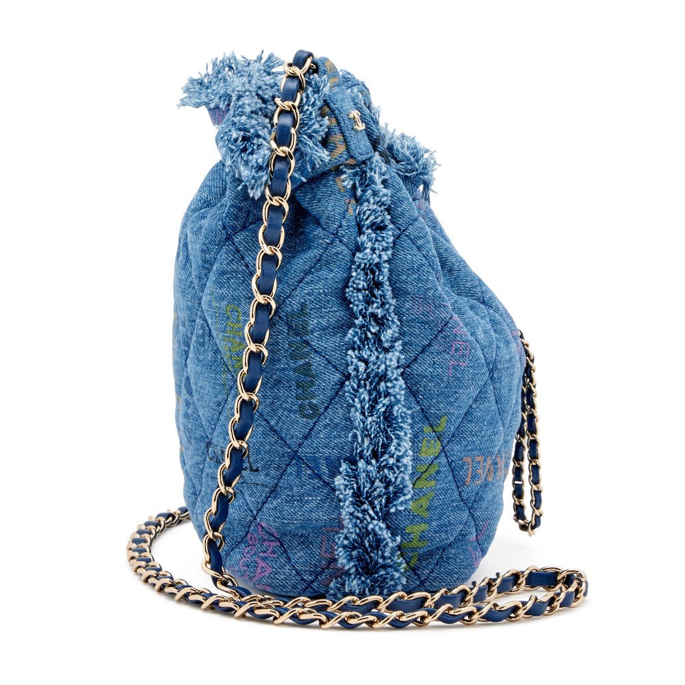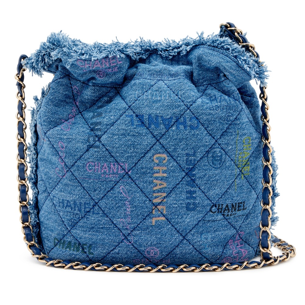 Chanel Blue Denim Logo Printed Quilted Mini Mood Bucket Bag Gold Hardware, 2022