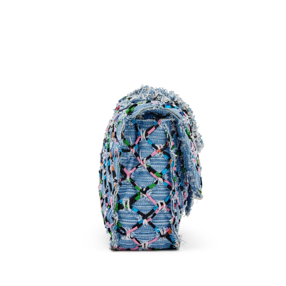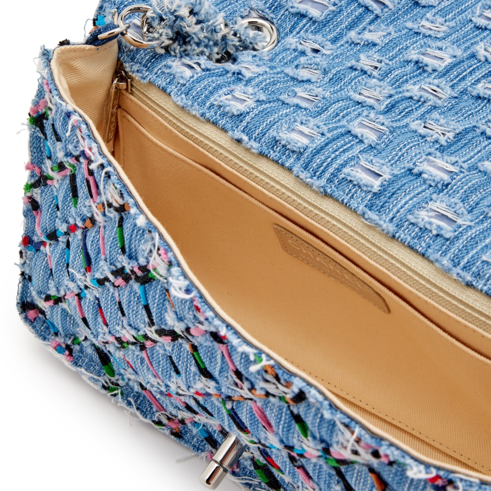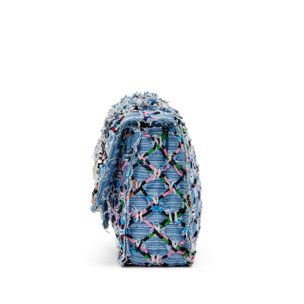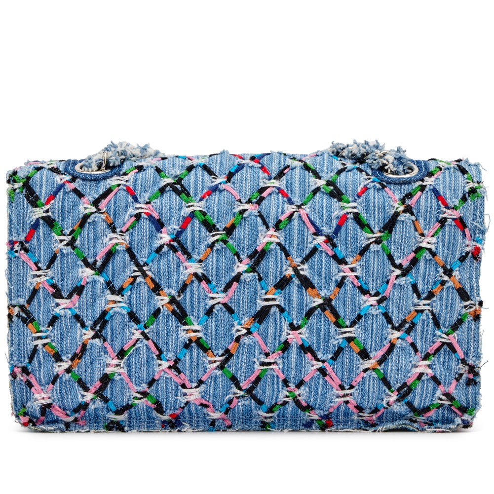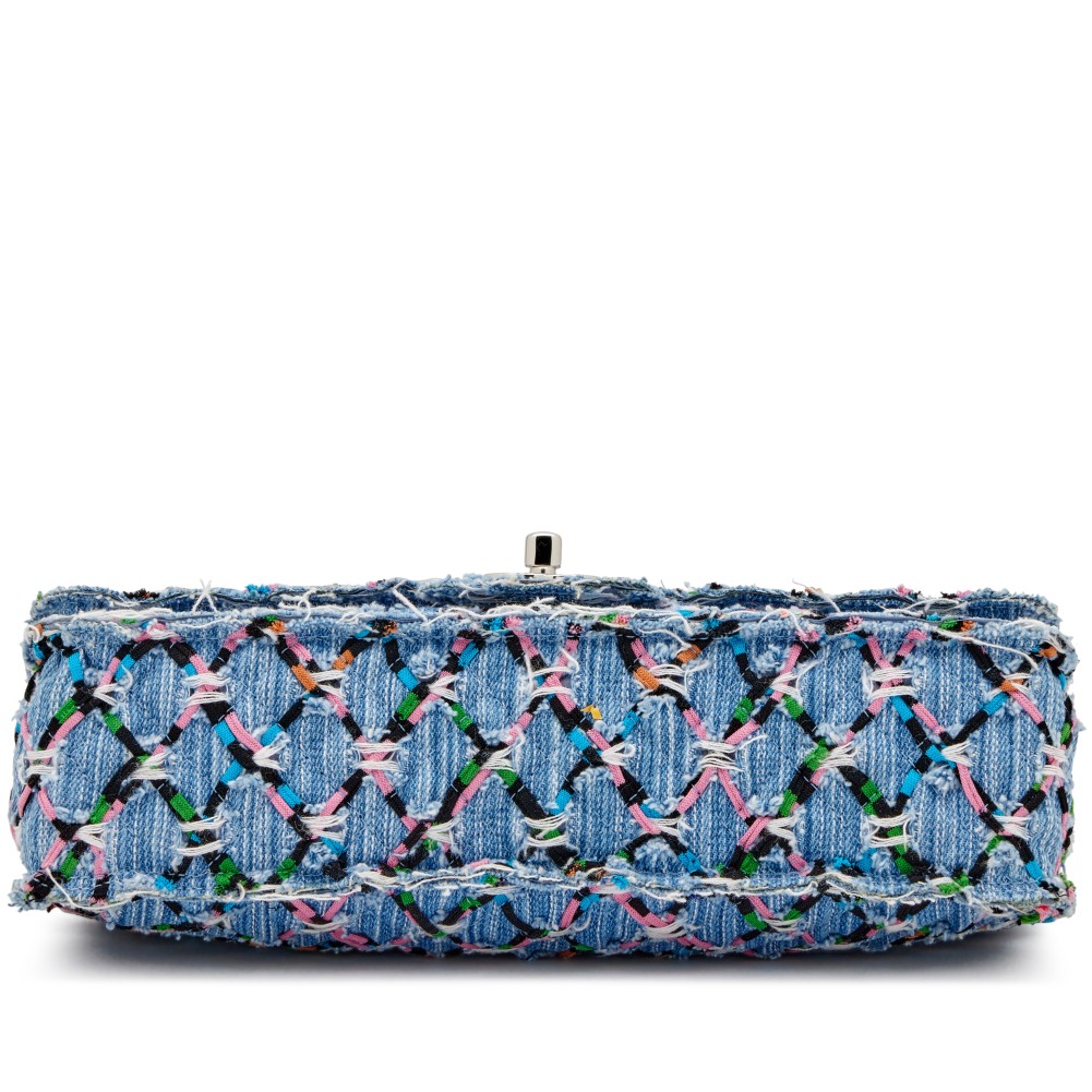 Chanel Blue Denim Rainbow Woven Stitch Quilted Robot Charm Medium Single Flap Silver Hardware, 2017