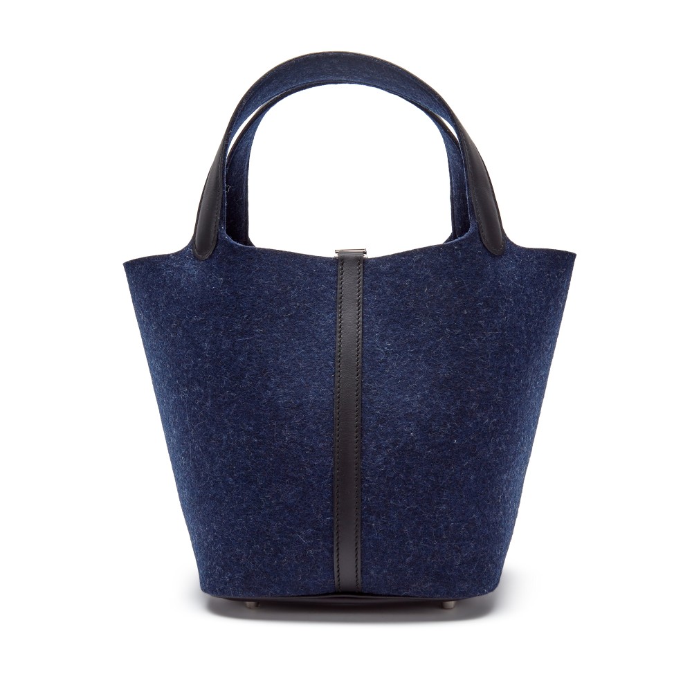Herm?s Blue Nuit Feutre Wool and Black Swift Picotin Lock 22 Palladium Hardware, 2021