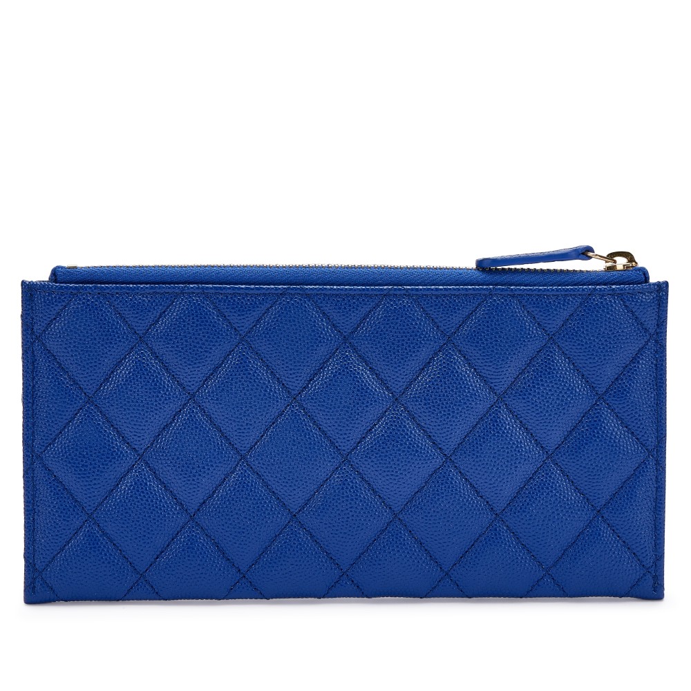 Chanel Blue Quilted Caviar Boy Wallet Gold Hardware
