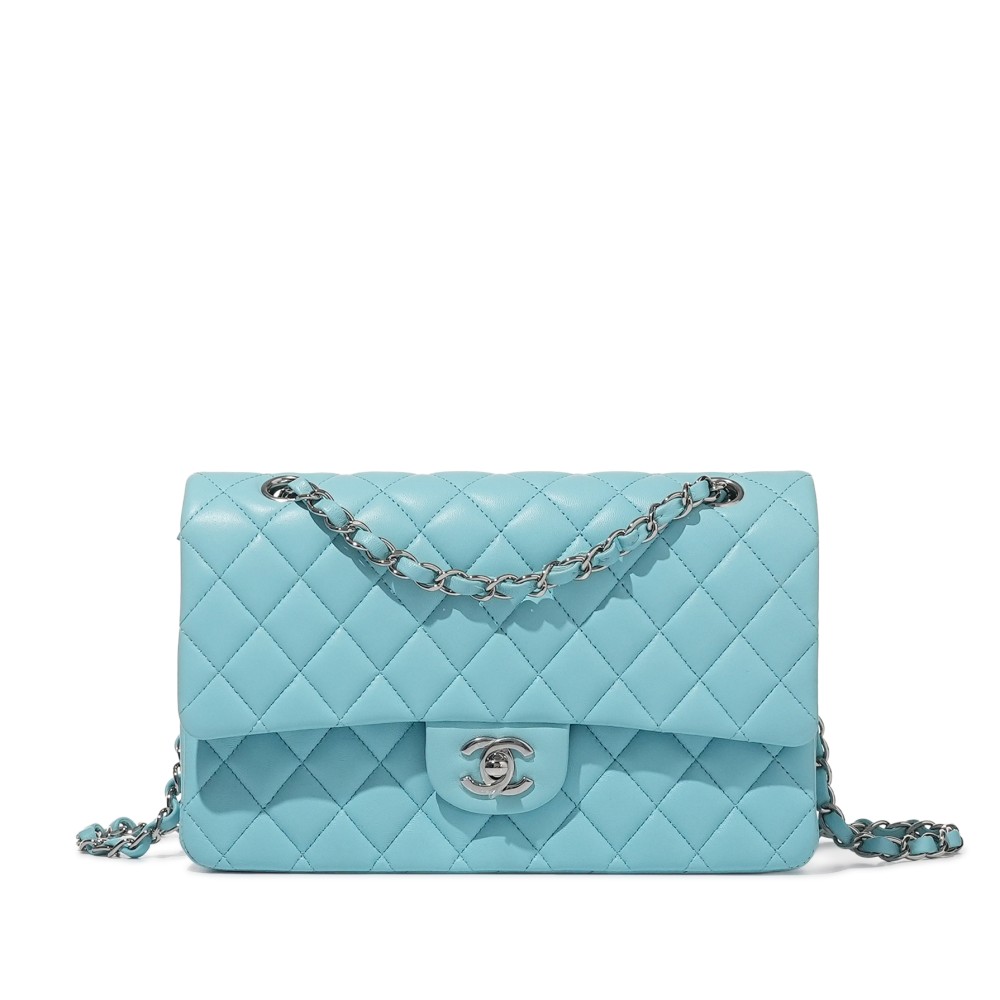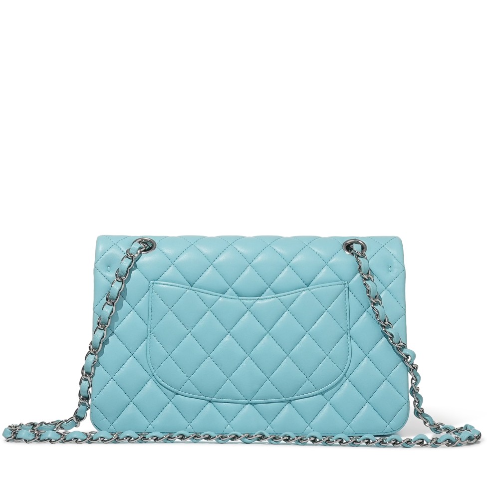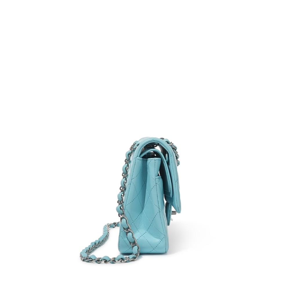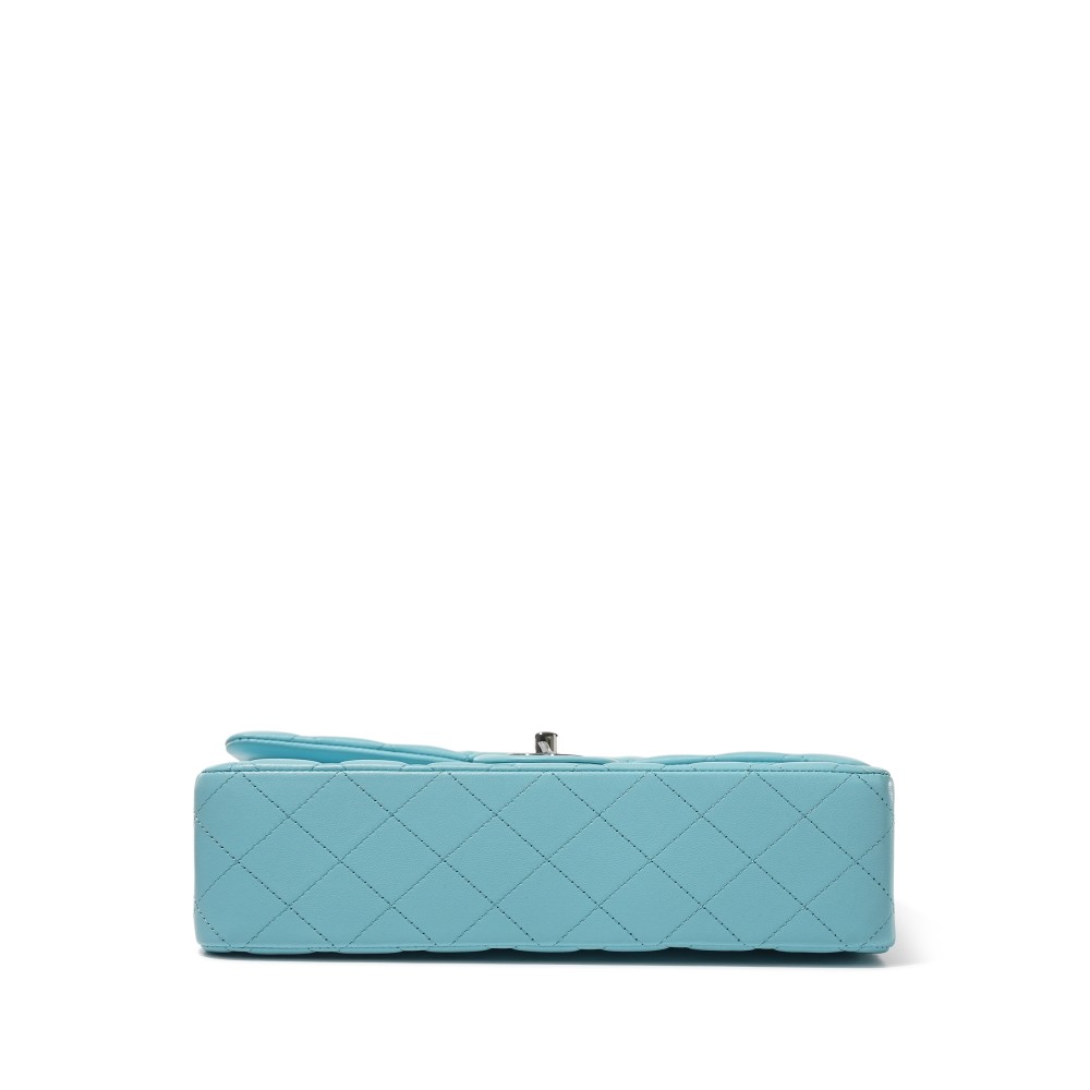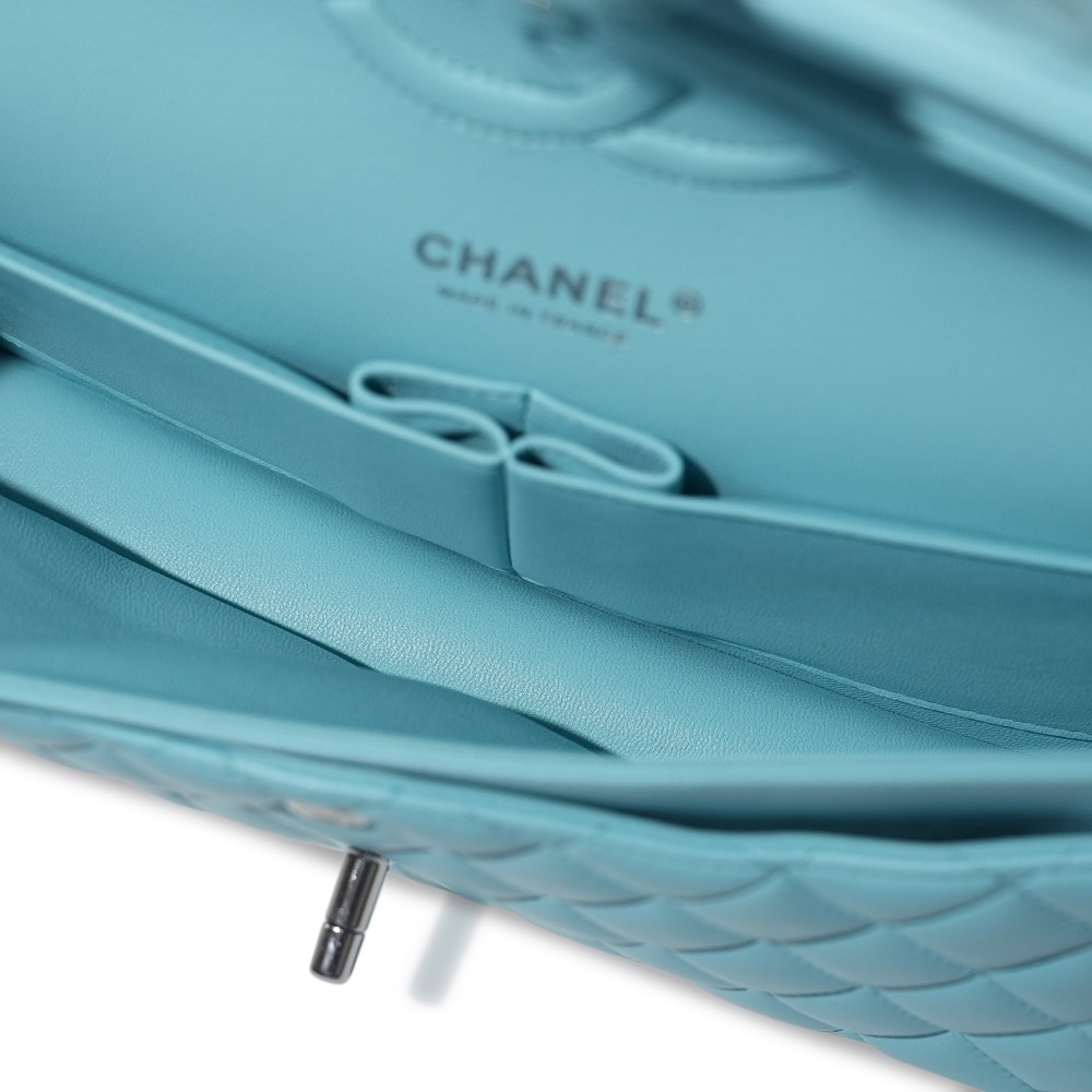Chanel Blue Quilted Lambskin Classic Double Flap Bag Silver Hardware, 2021