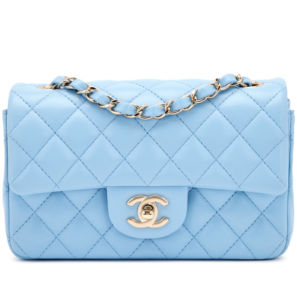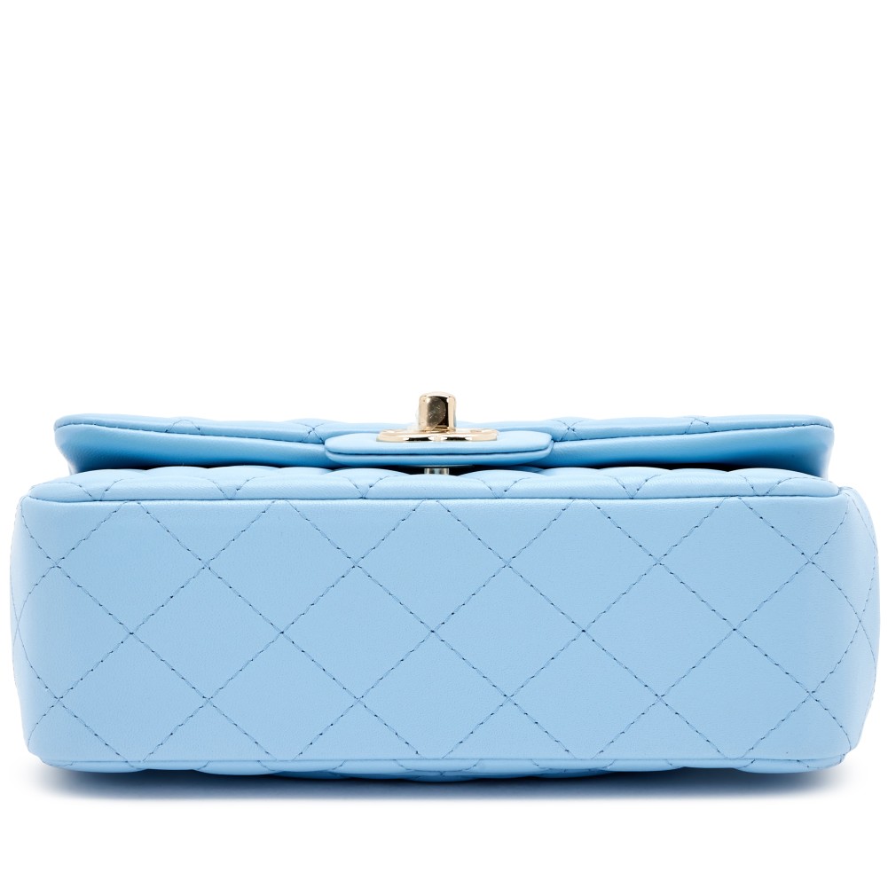 Chanel Blue Quilted Lambskin Mini Rectangular Classic Flap Light Gold Hardware, 2022