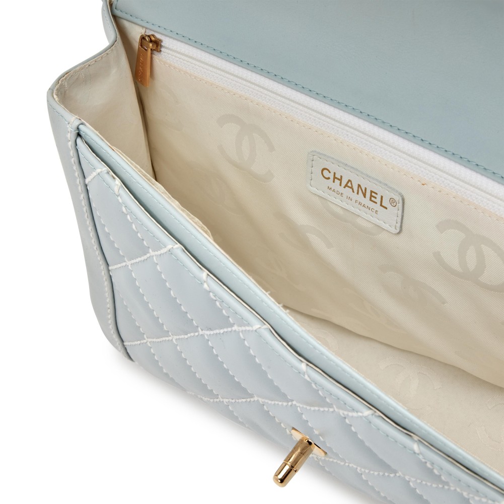 Chanel Blue Quilted Wild Stitch Top Handle Flap Gold Hardware, 2004-2005