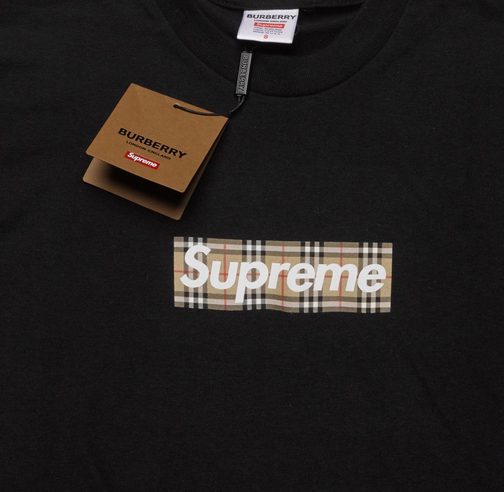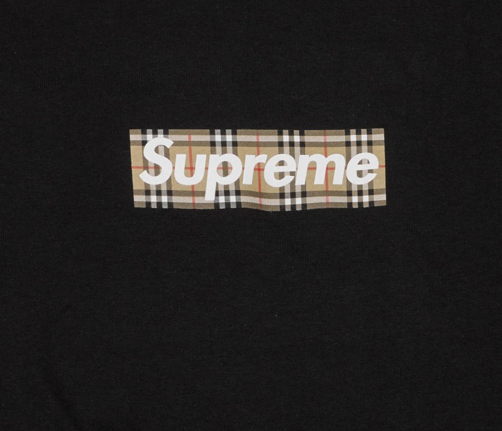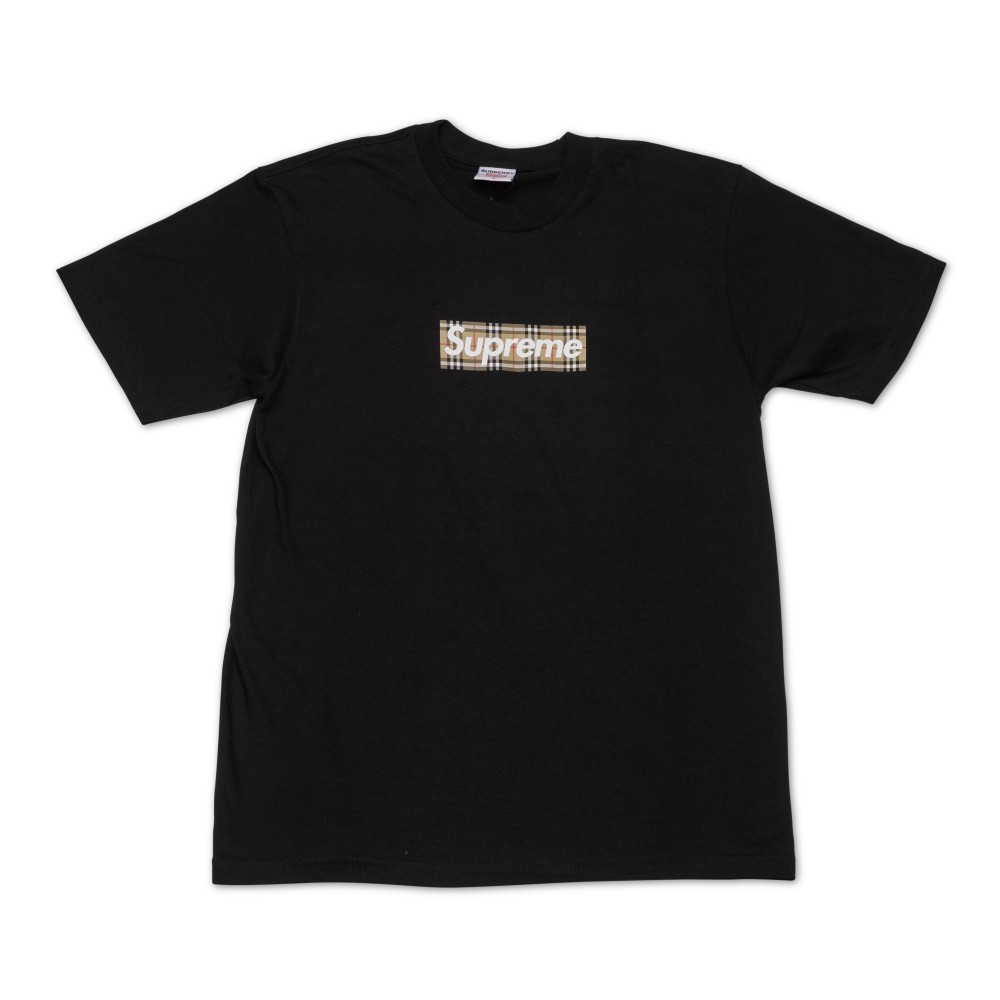 - Supreme x Burberry Box Logo Tee in Black.