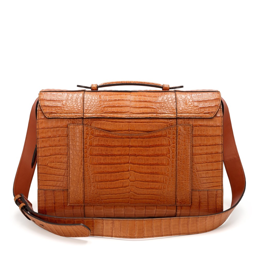 Gucci Brown Alligator Large GG Marmont Briefcase Gold Hardware