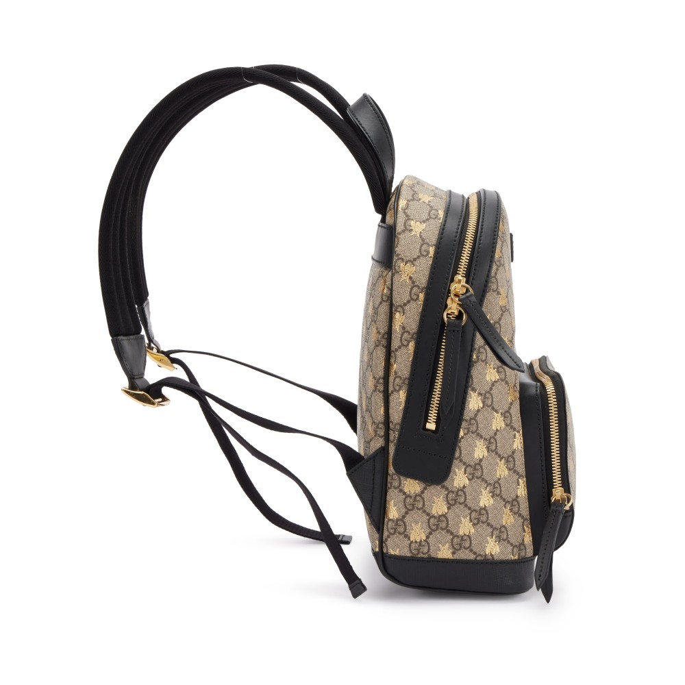 Gucci Brown and Gold GG Supreme Monogram Bees Small Day Backpack Gold Hardware
