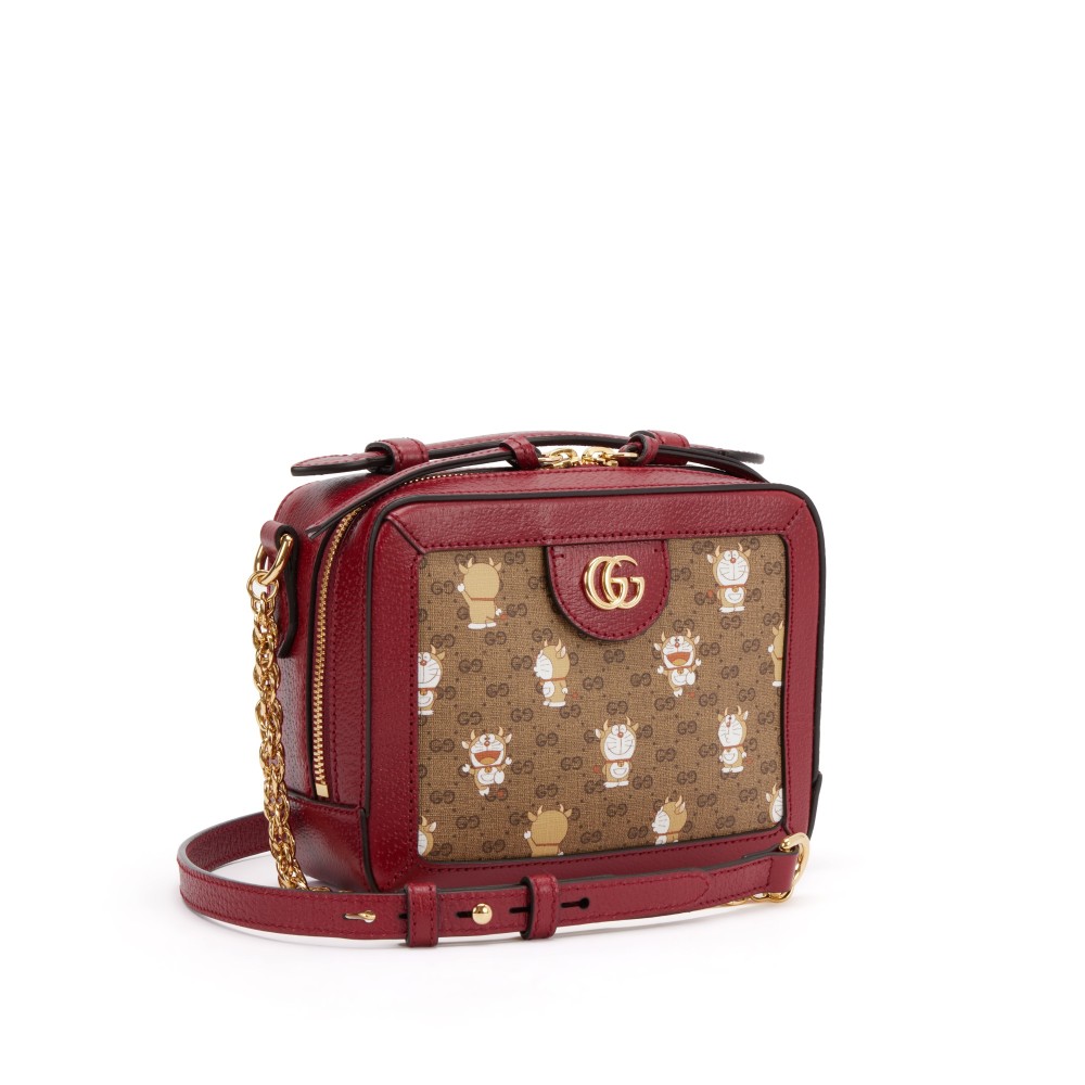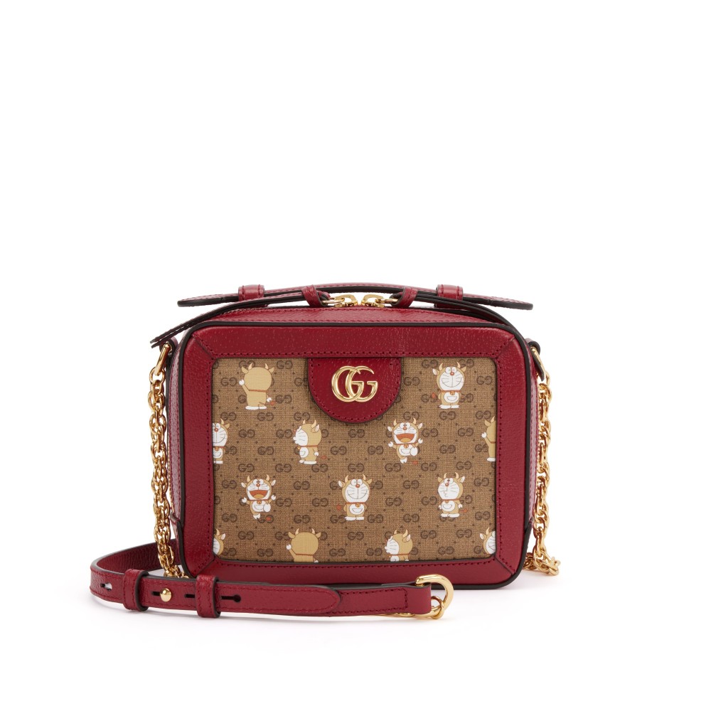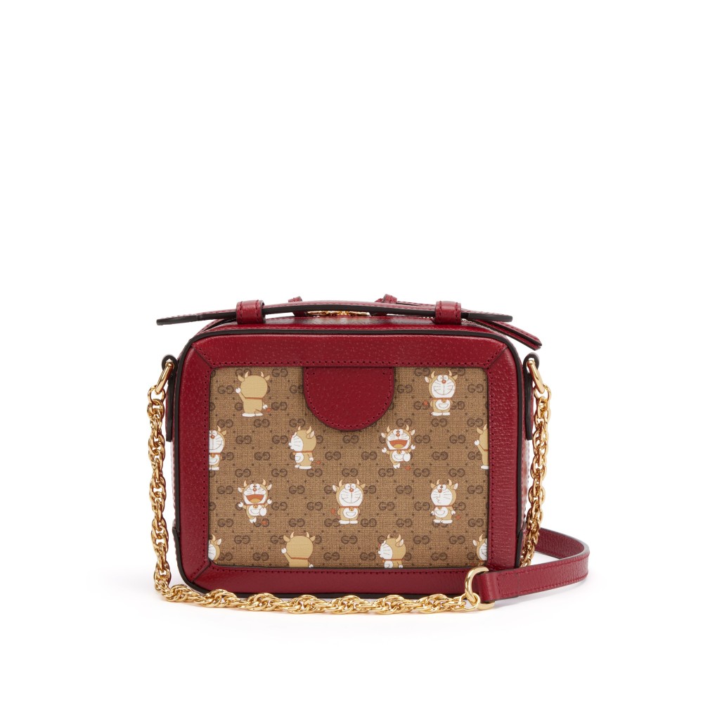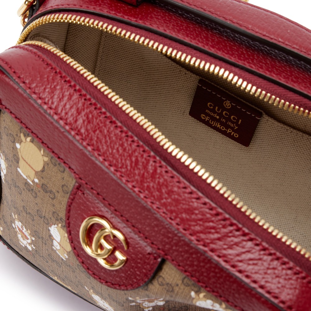 Gucci Brown Coated Canvas and Red Leather Doraemon Purse Box Gold Hardware, 2021