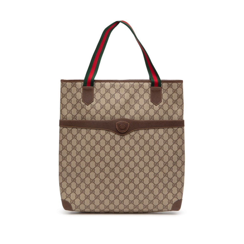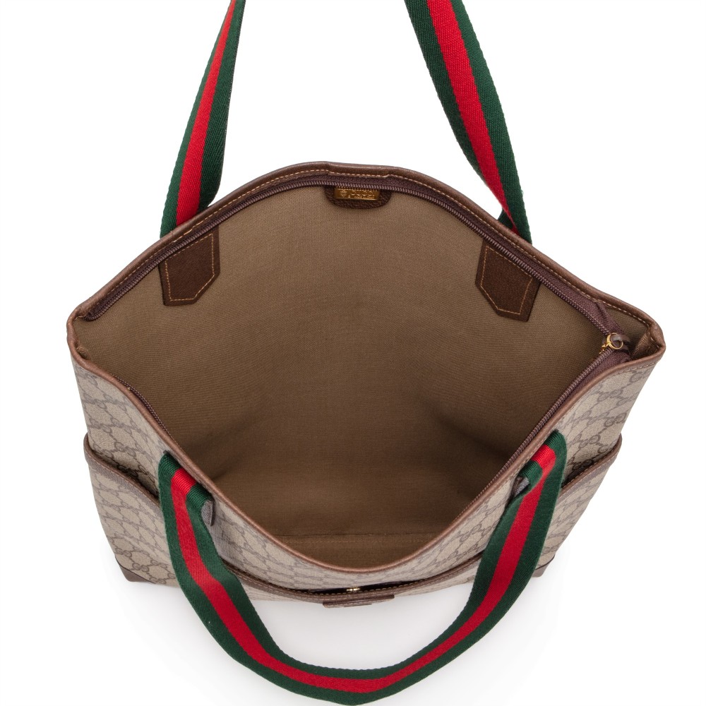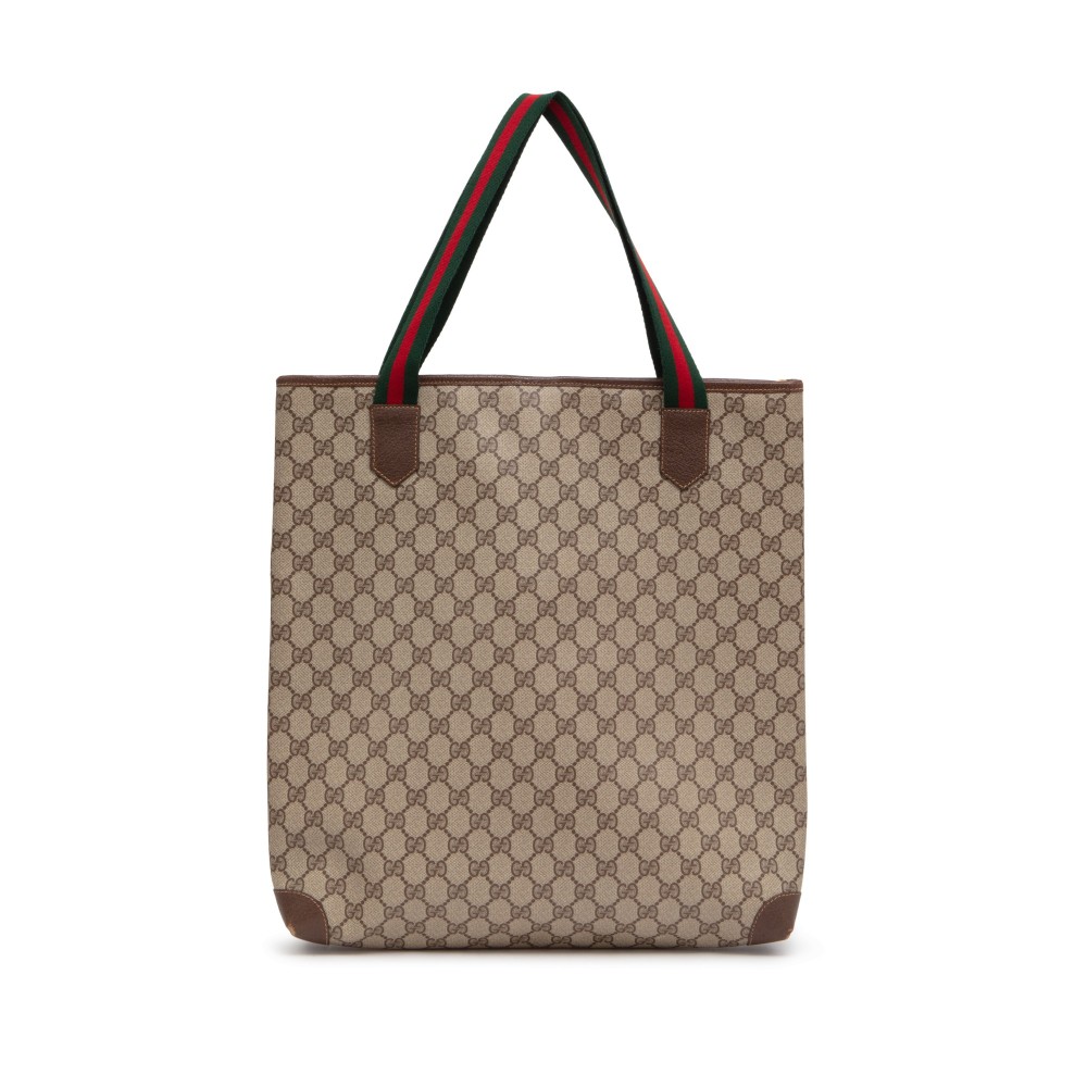 Gucci Brown GG Supreme Canvas Web Tote Gold Hardware