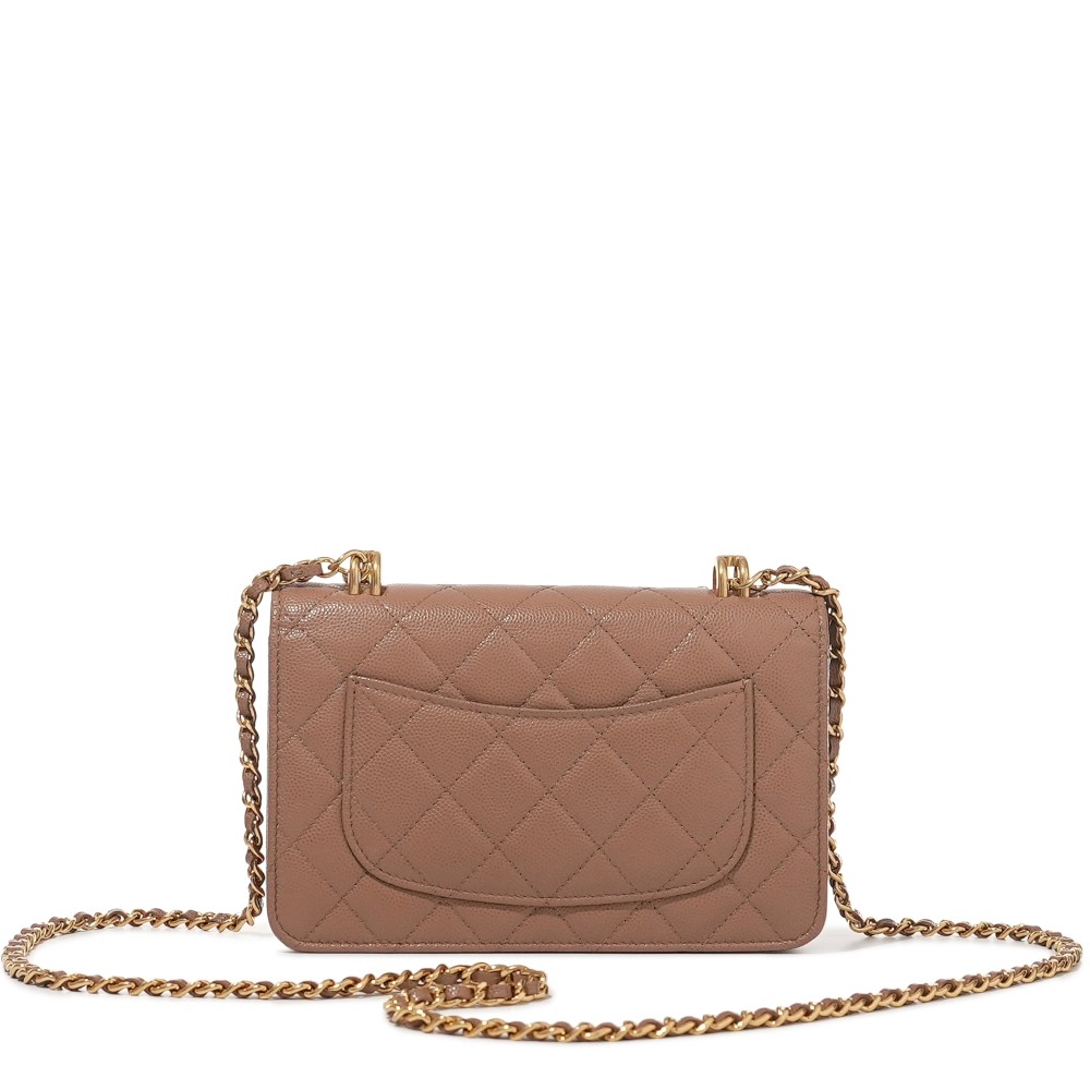 Chanel Brown Quilted Caviar Top Handle Pick Me Up Wallet on Chain Gold Hardware