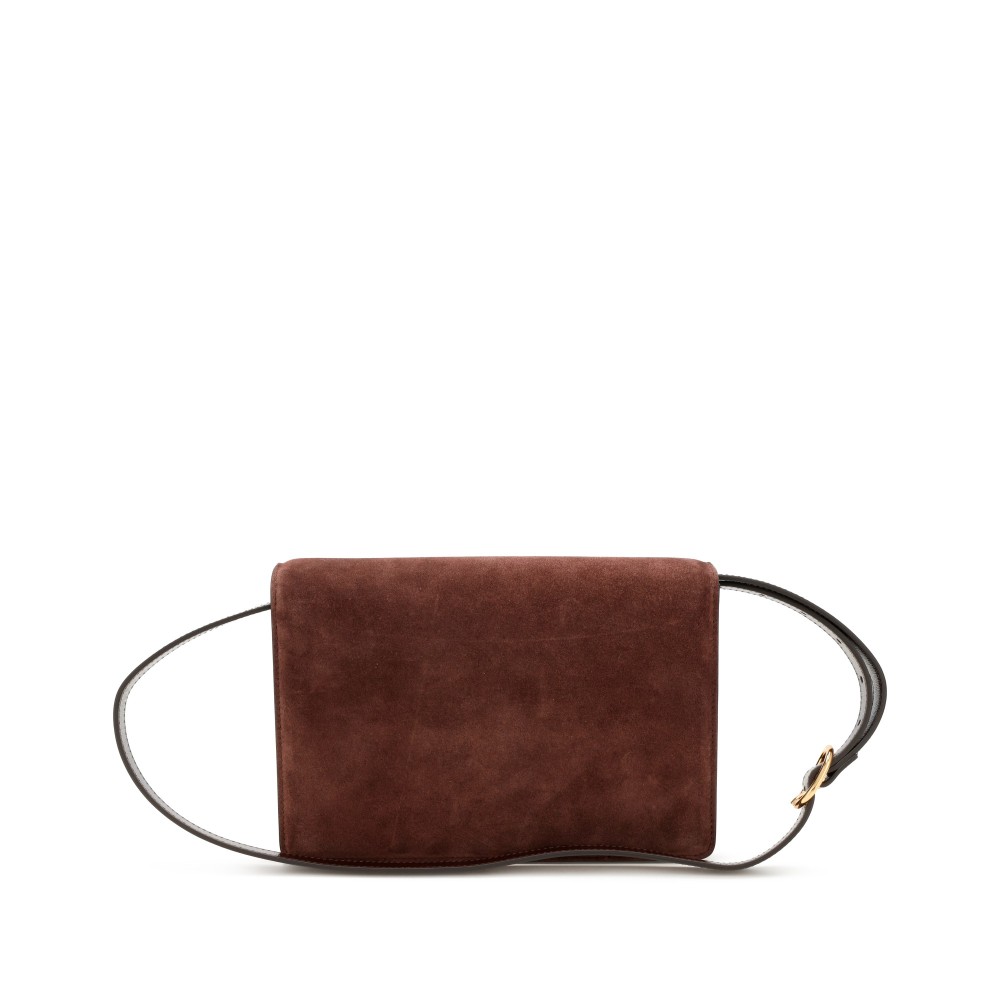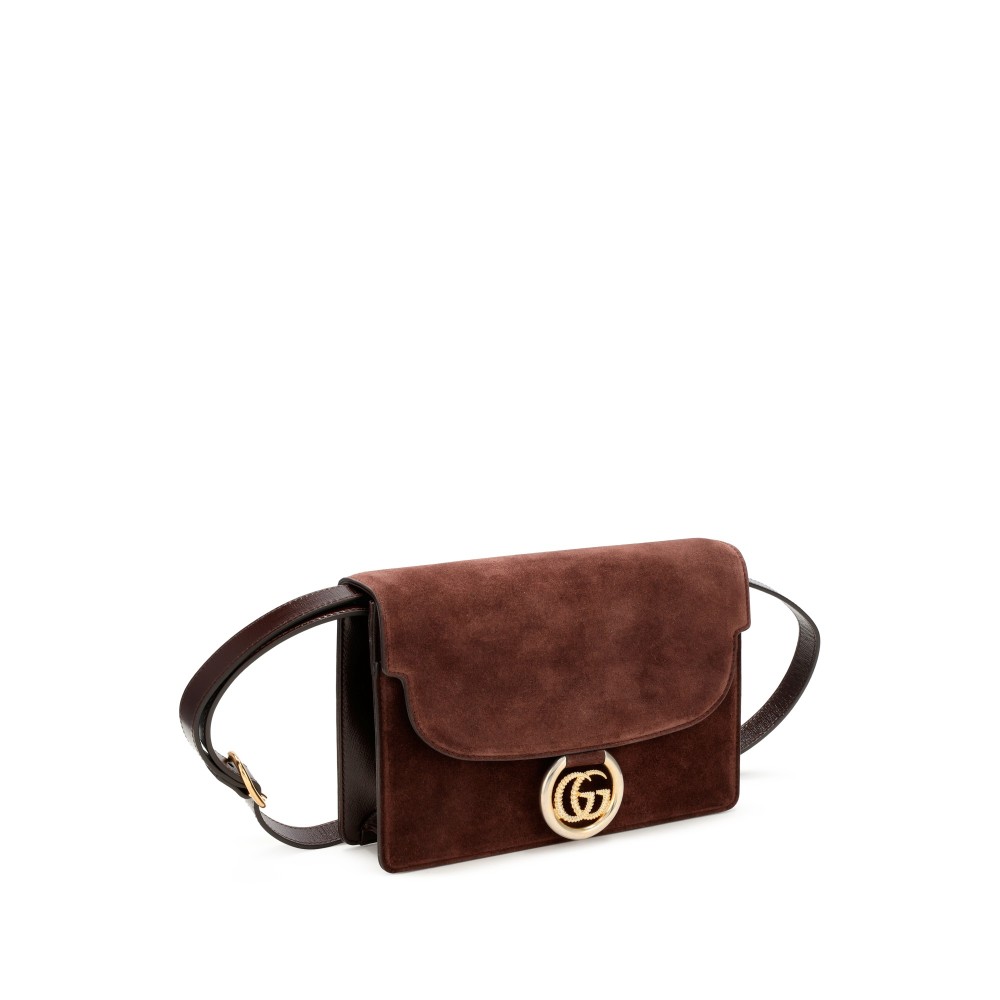 Gucci Brown Suede Small GG Ring Shoulder Bag Gold Hardware