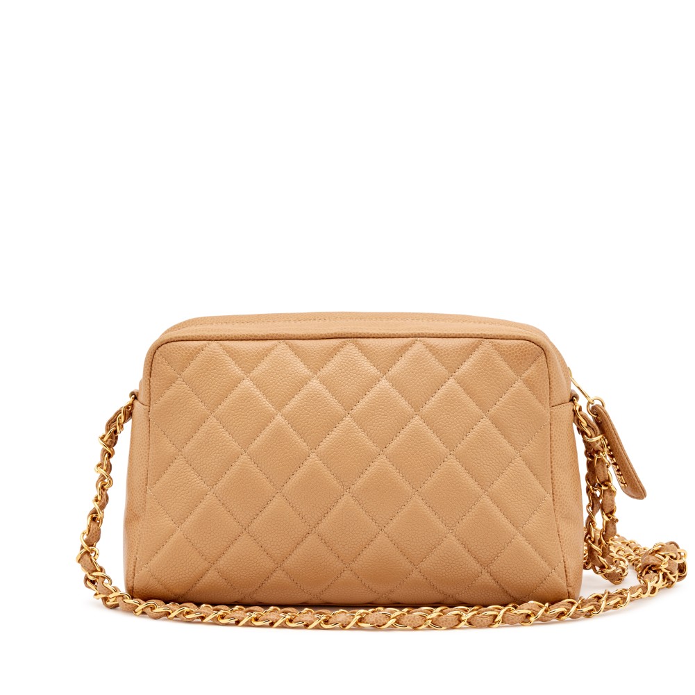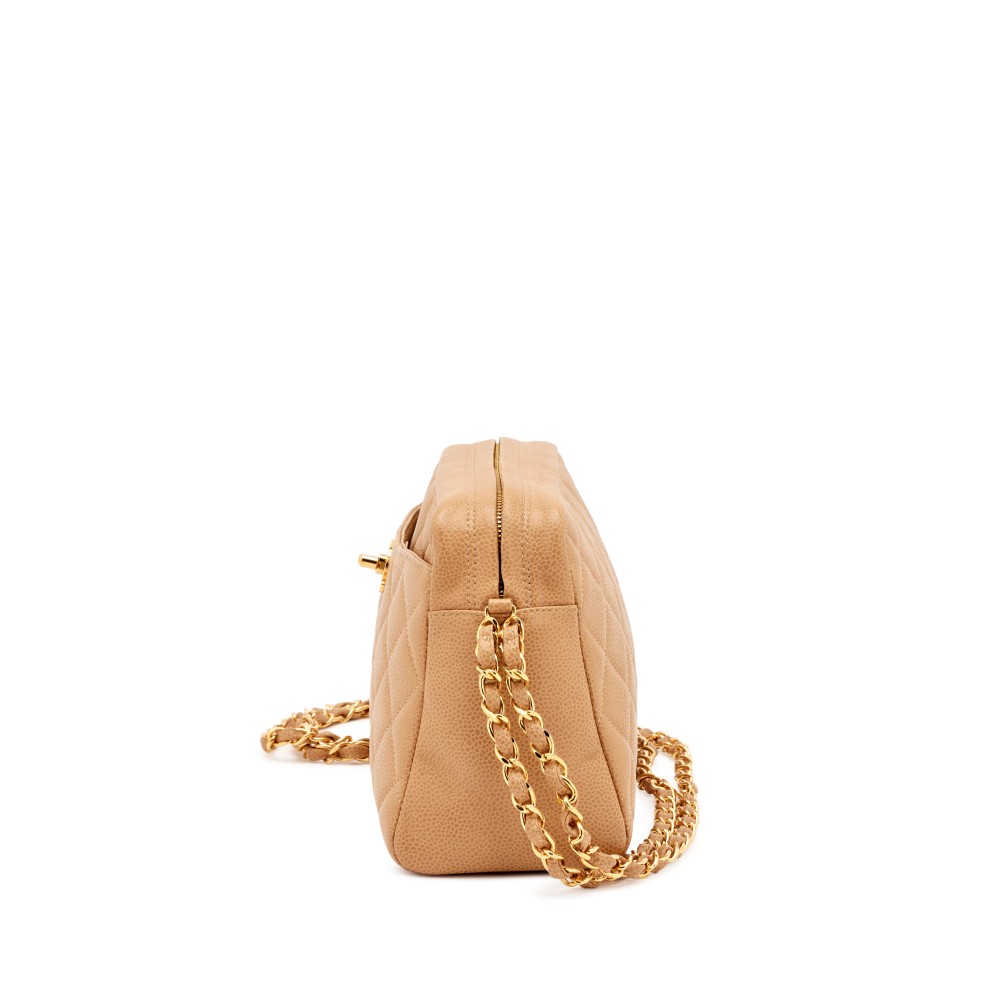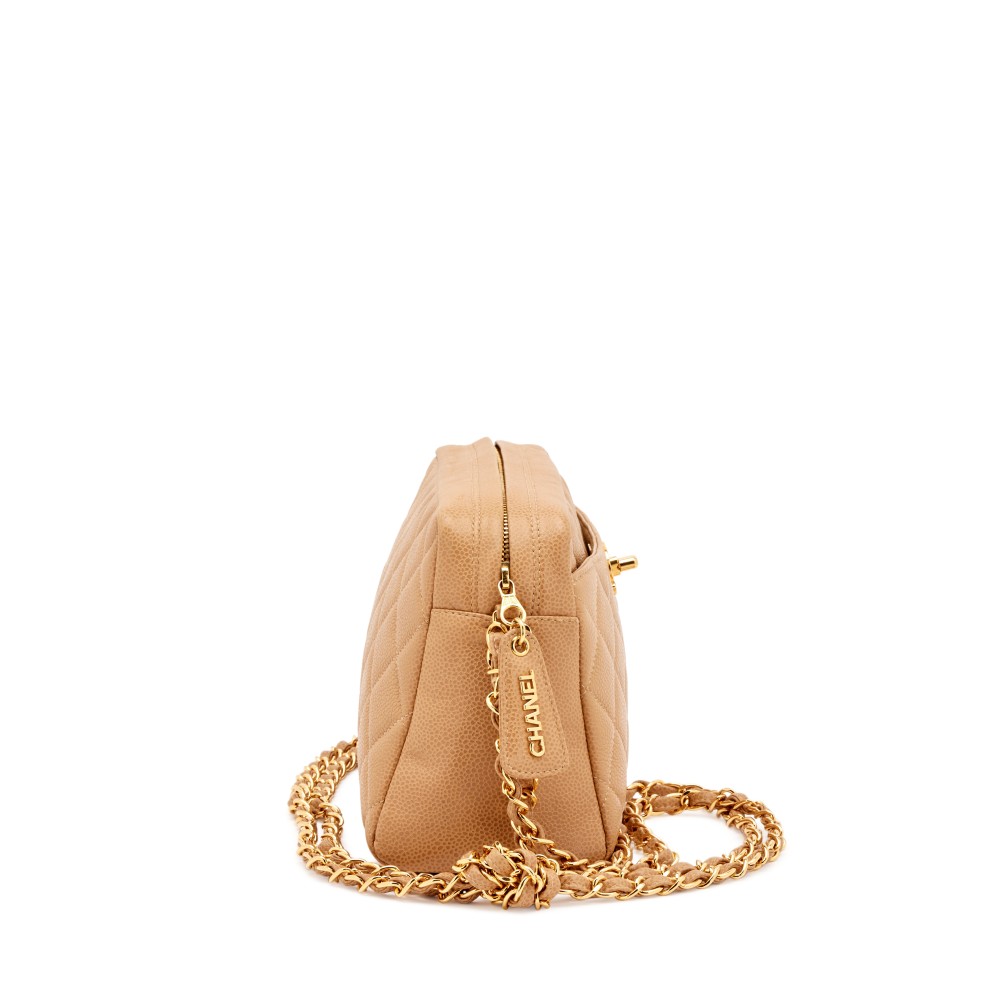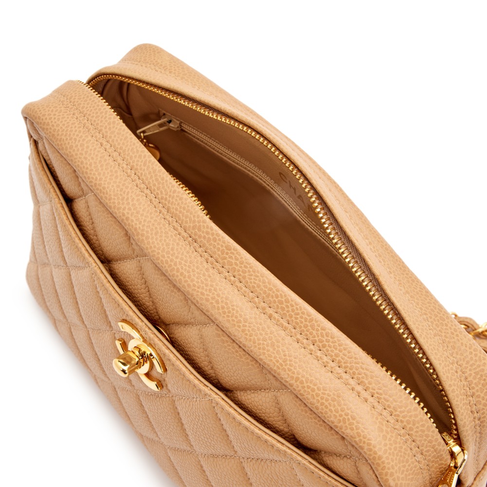Chanel Camel Beige Quilted Caviar Front Pocket CC Camera Bag Gold Hardware, 1996-1997
