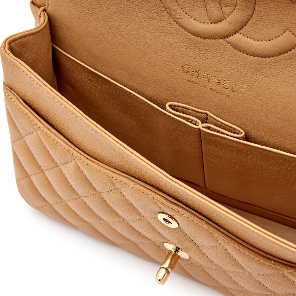 Chanel Camel Beige Quilted Caviar Medium Classic Double Flap Gold Hardware, 2005-2006