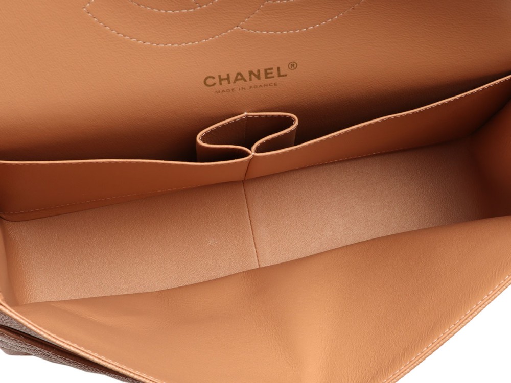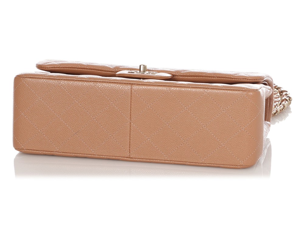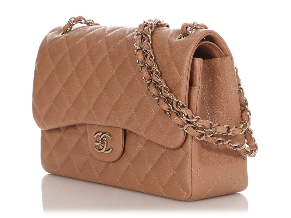 Chanel Caramel Quilted Caviar Jumbo Classic Double Flap Gold Hardware, 2018