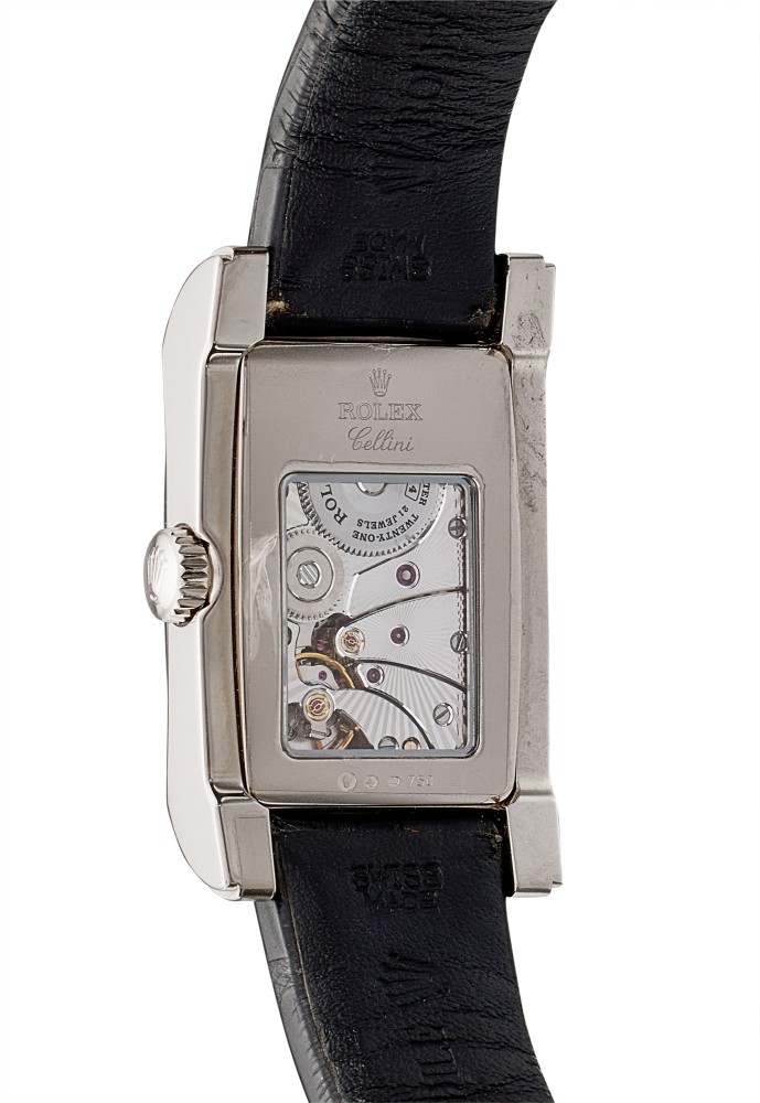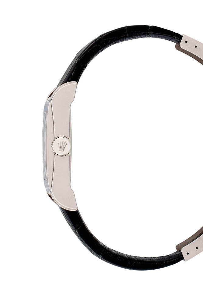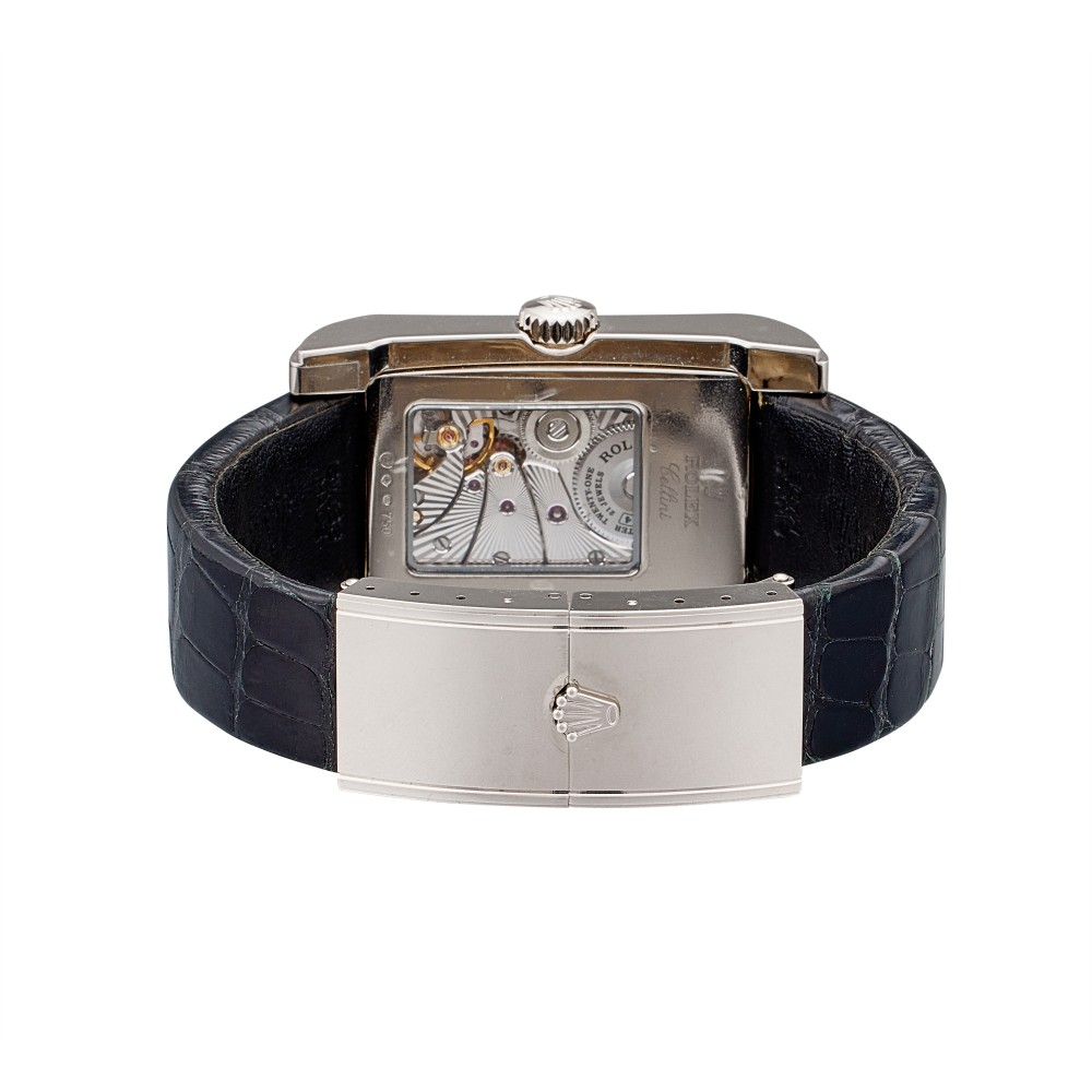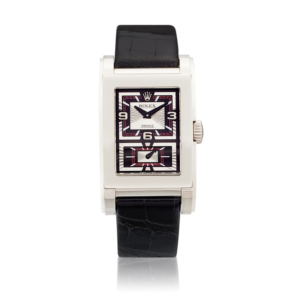 This Rolex Cellini Prince reference 5443 white gold wristwatch circa 2005 features a silvered dial, caliber: cal. 7040-4 manual winding movement with 18k white gold Rolex double-folding clasp. This watch comes with a full set of papers and box.