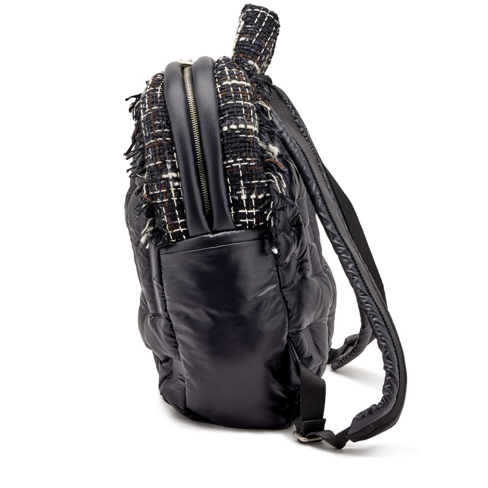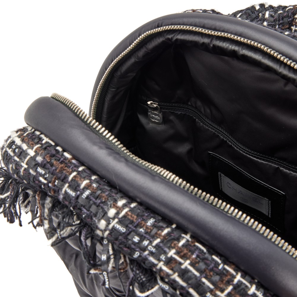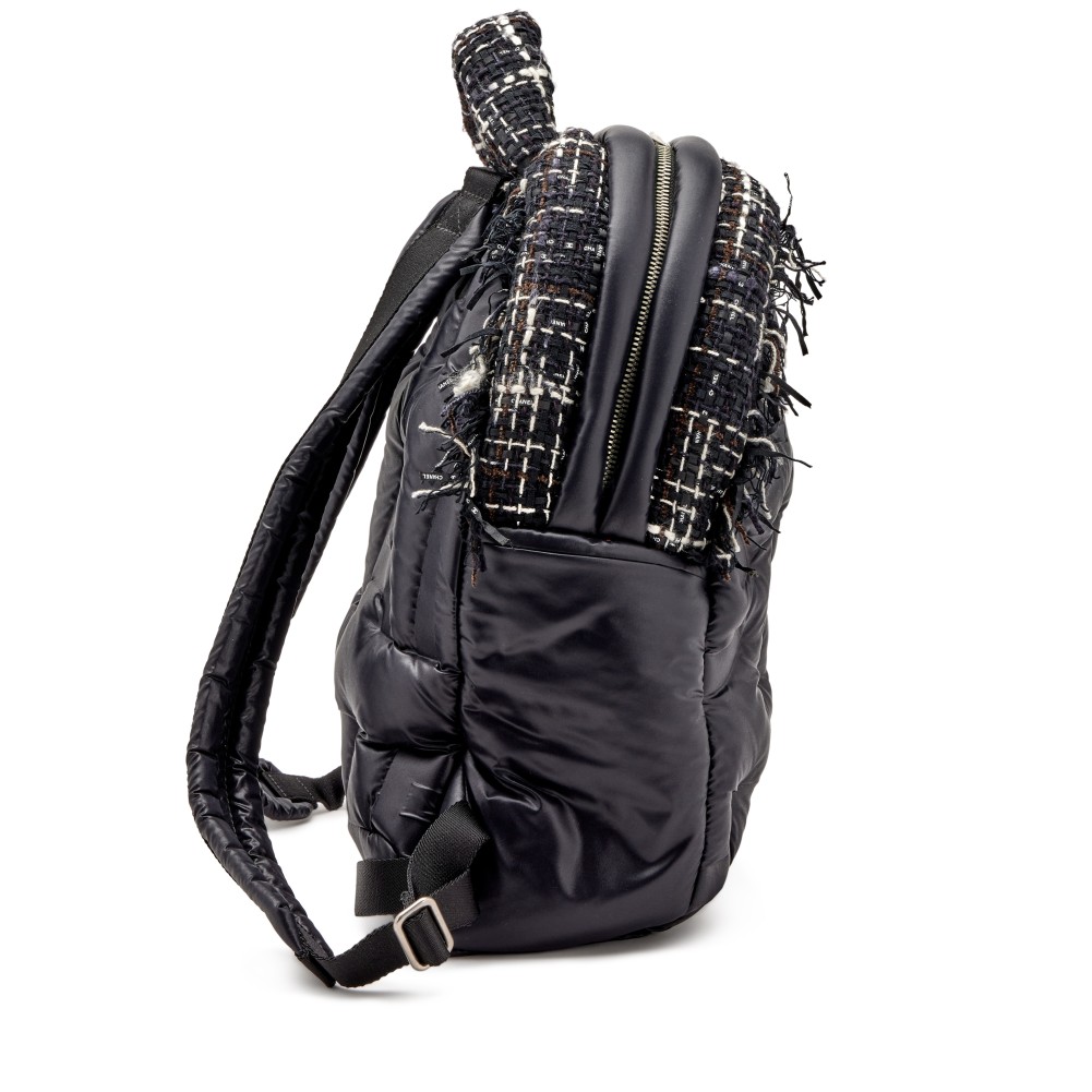 Chanel Black Embossed Nylon & Black and White Tweed Doudoune Medium Backpack Silver Hardware, 2018-2019