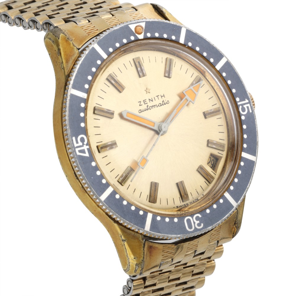 Zenith has been known for precision and accuracy throughout its history. This classic model is gold plated with an automatic movement and date.
