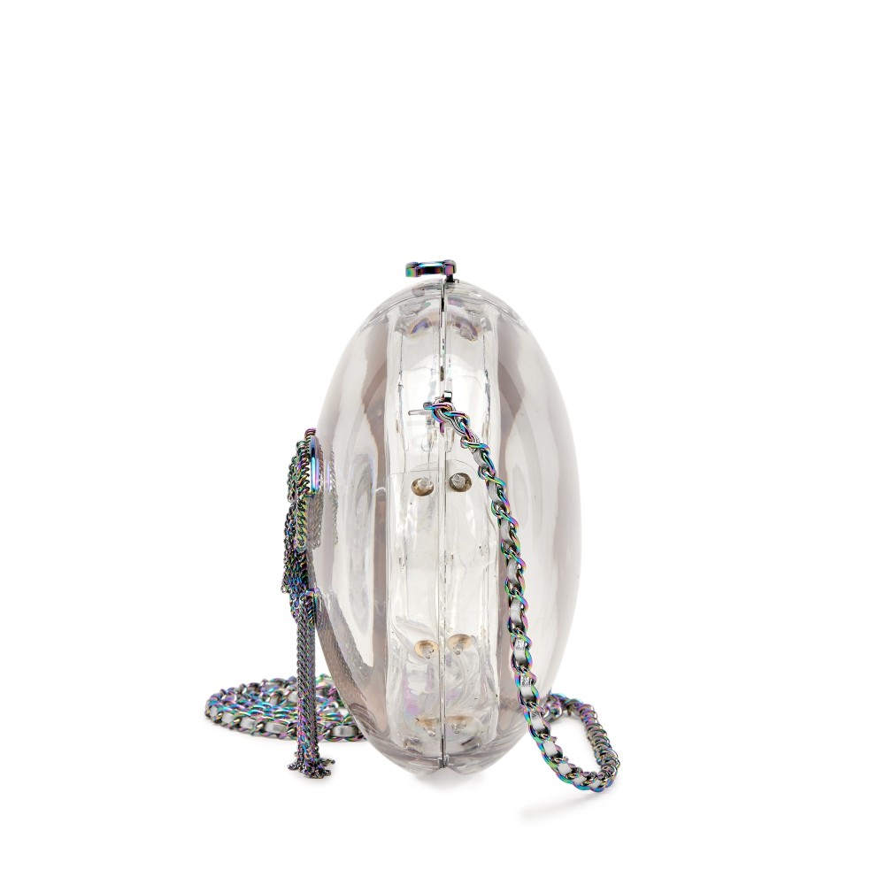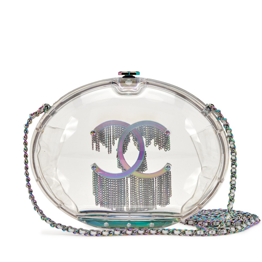 Chanel Clear Plexiglass and Silver Lambskin Minaudi?re Rainbow Hardware, 2018