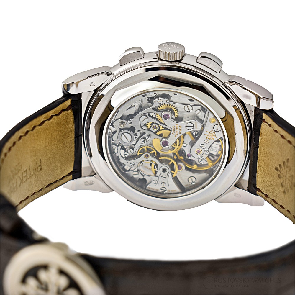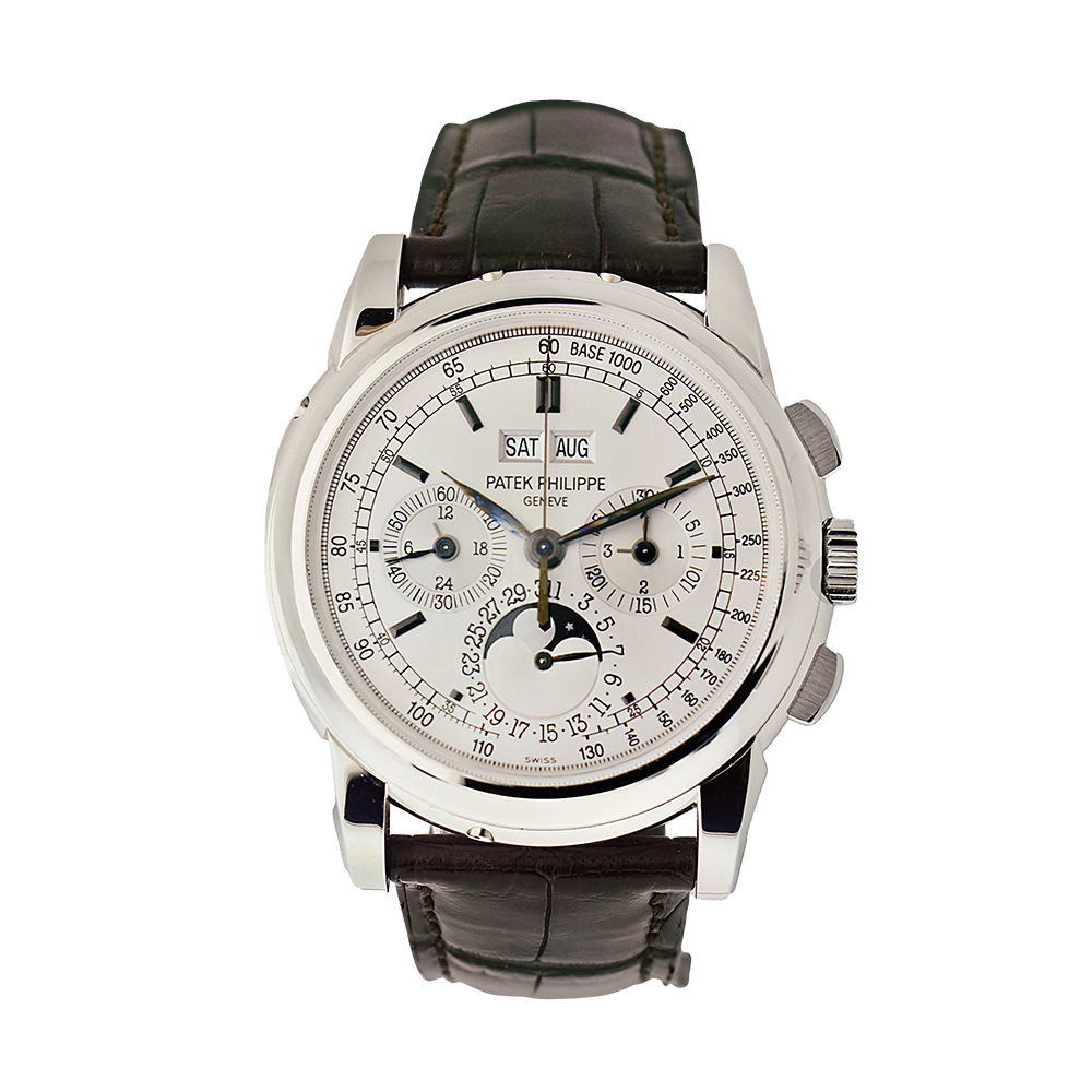 In fact, Patek Philippe first produced in white gold with a matching white dial. The white dial is meant to balance the black hands and numerals. The 5970 remains one of Patek Philippe?s most respected and most sought-after references to date.