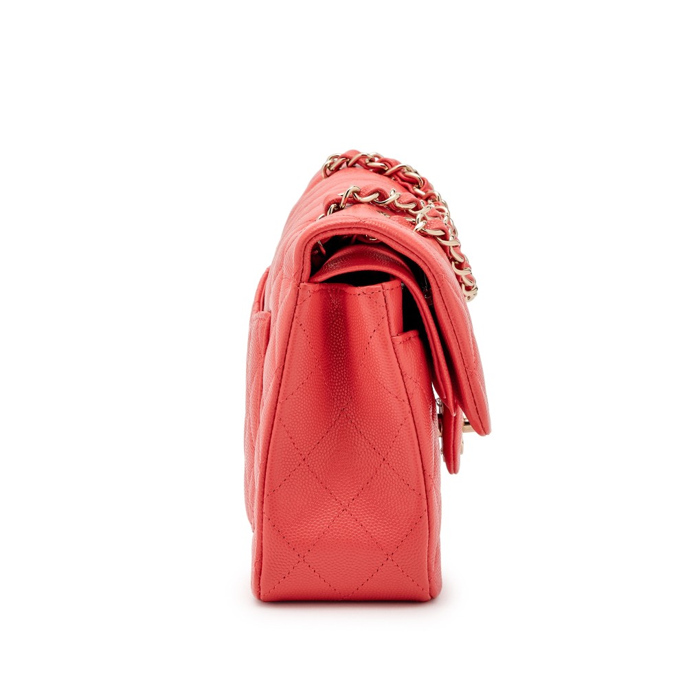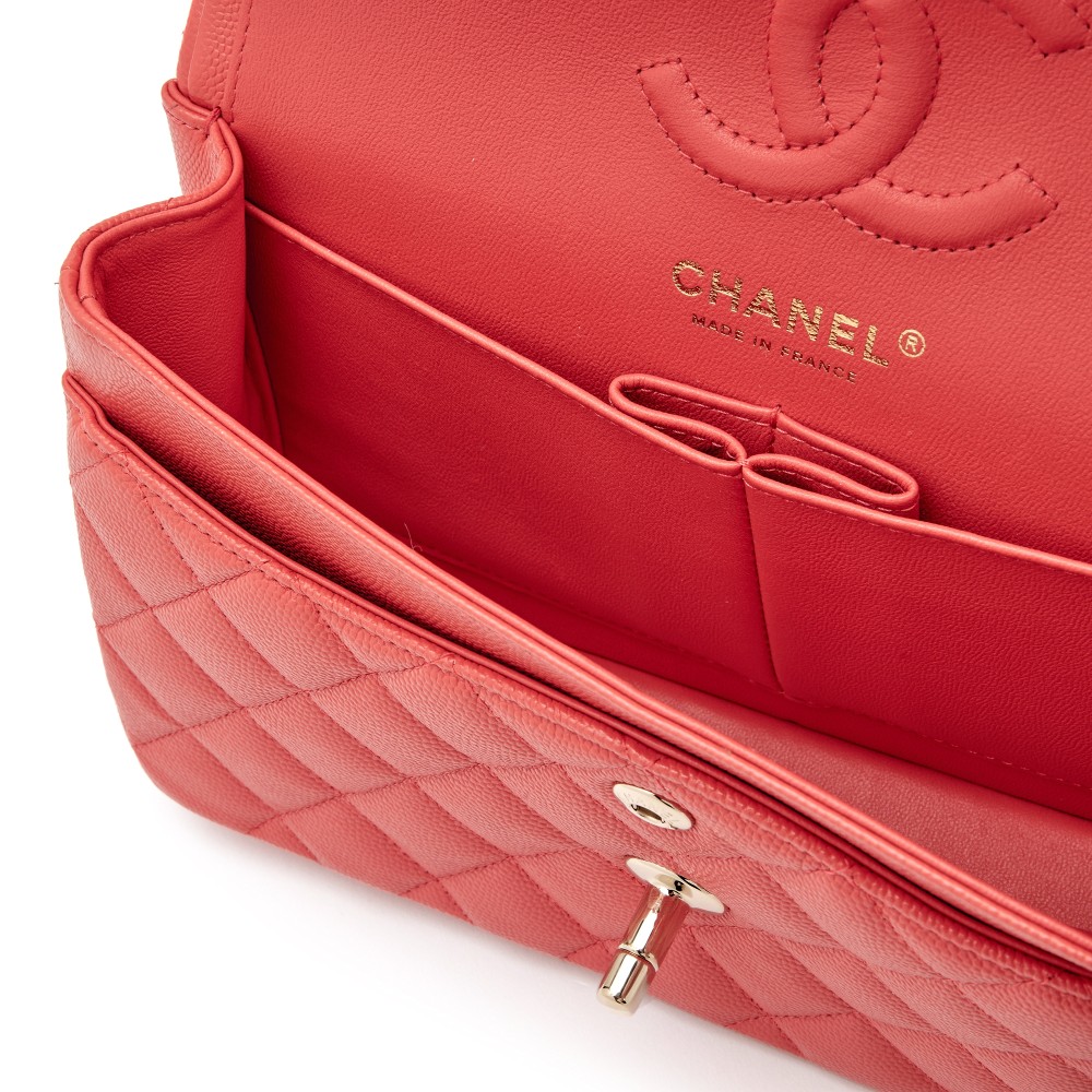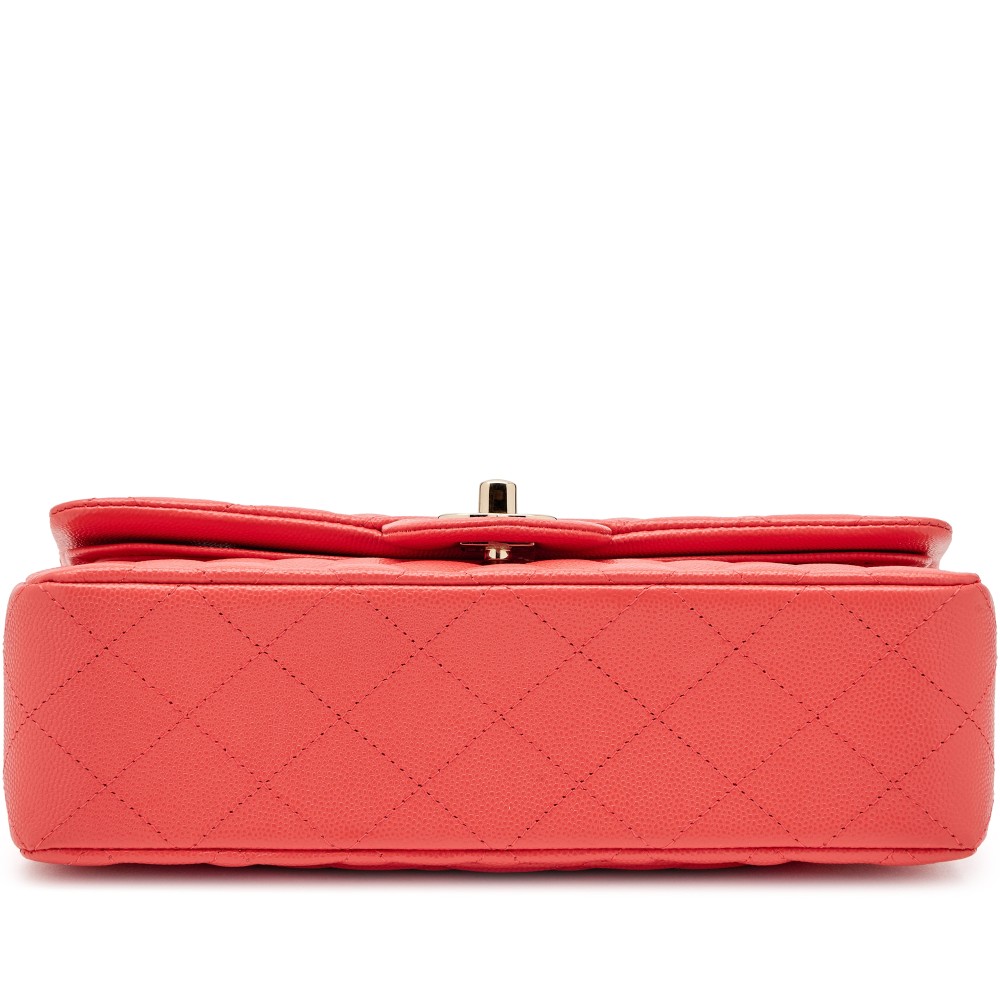 Chanel Coral Pink Quilted Caviar Small Classic Double Flap Light Gold Hardware, 2021