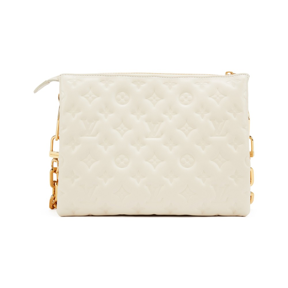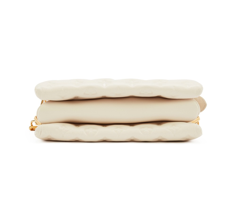 Louis Vuitton Cream Puffy Monogram Lambskin Coussin PM Gold Hardware, 2021