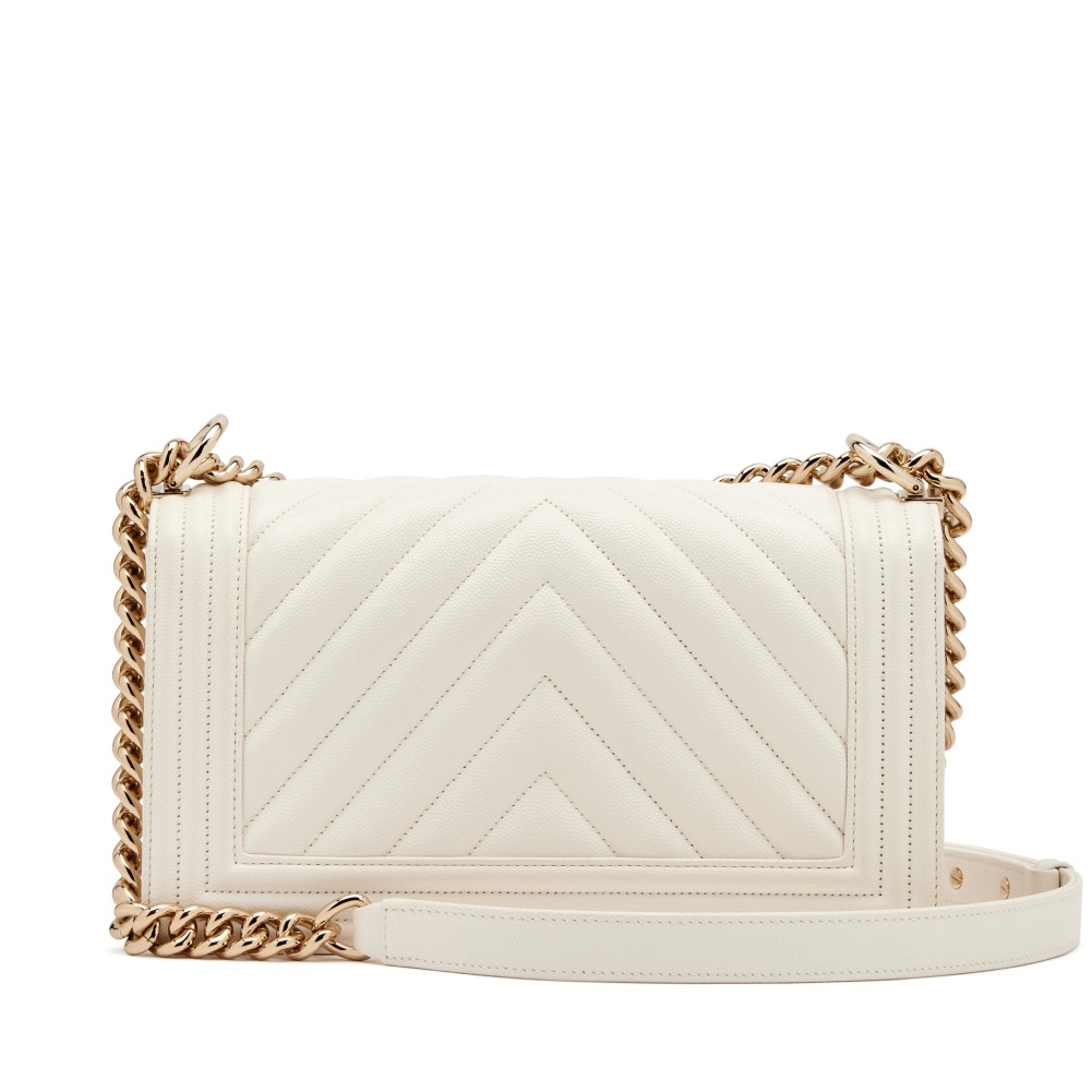 Chanel Cream White Chevron Quilted Caviar Old Medium Boy Bag Light Gold Hardware, 2022